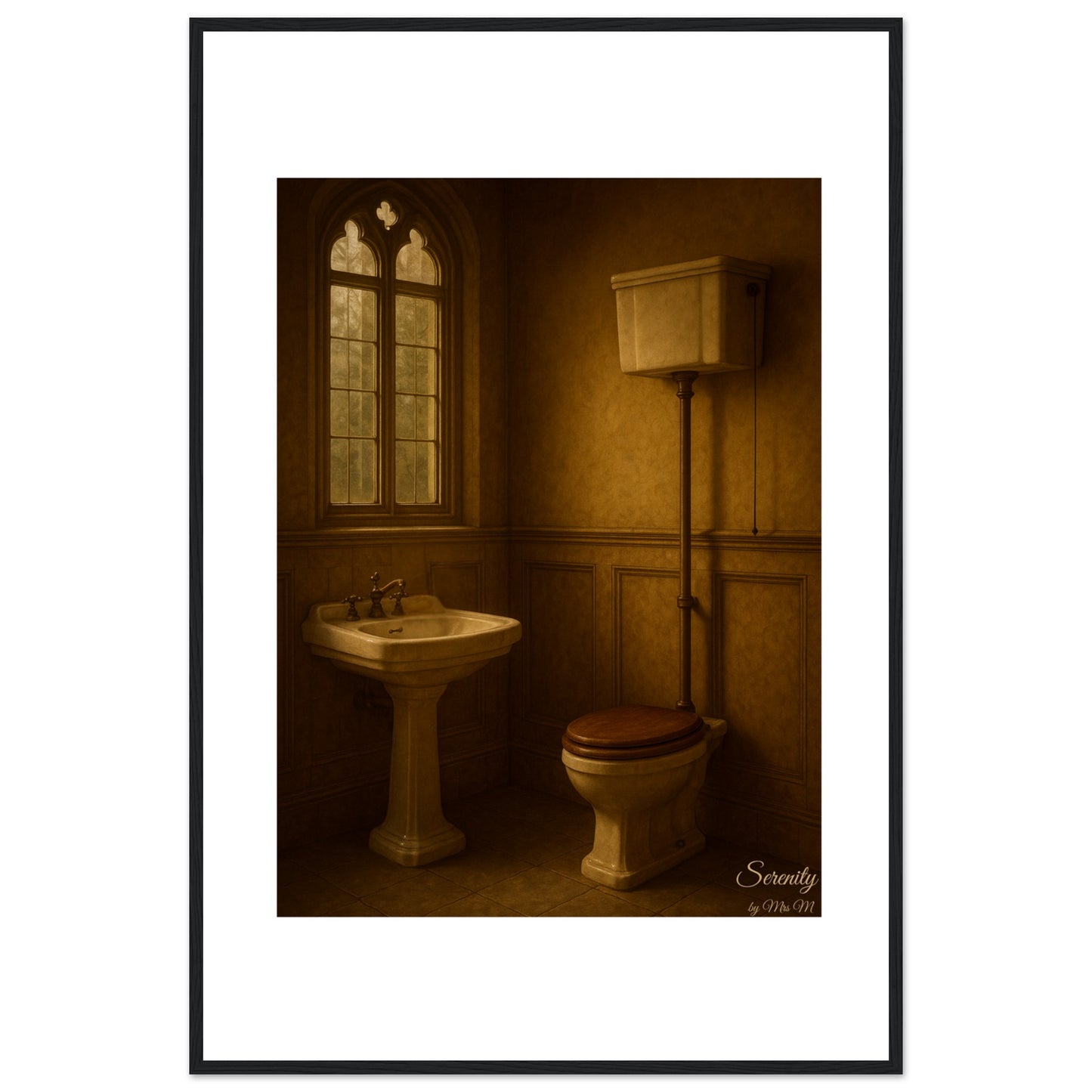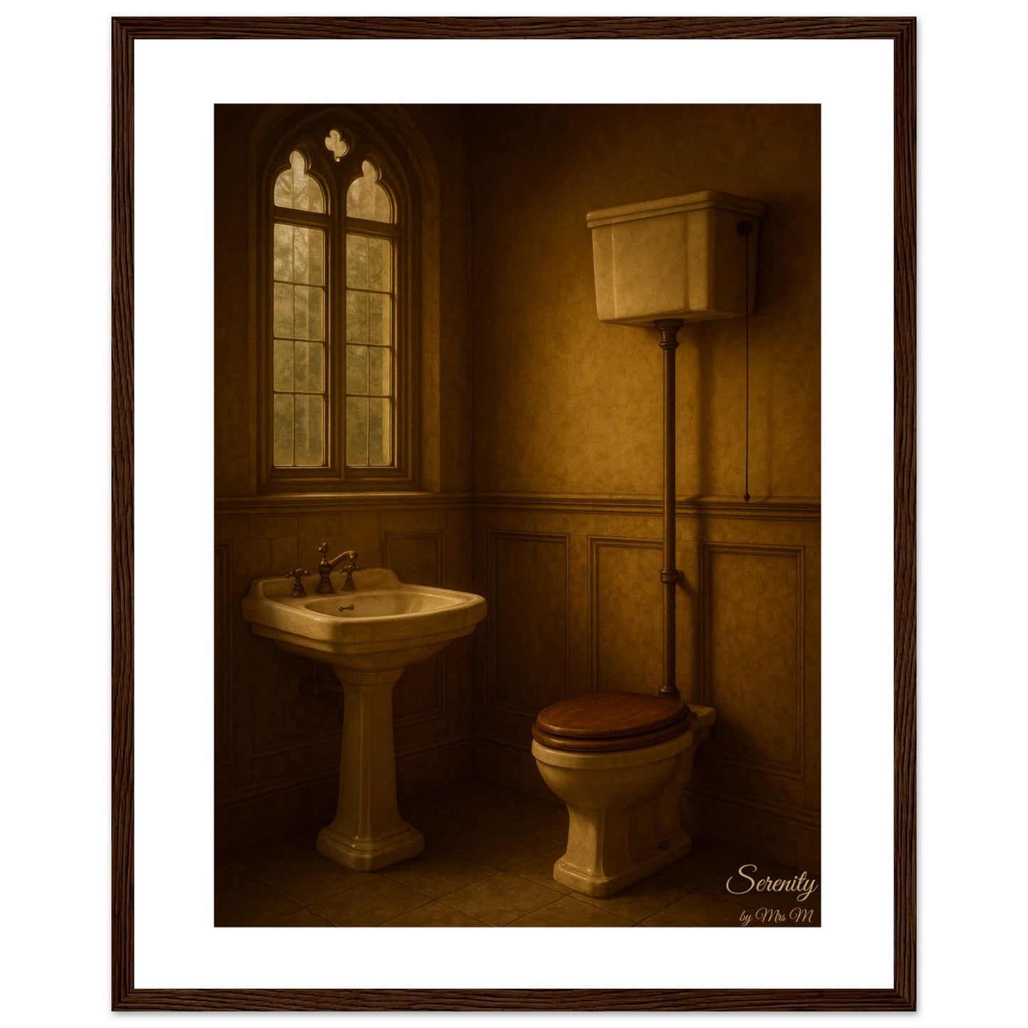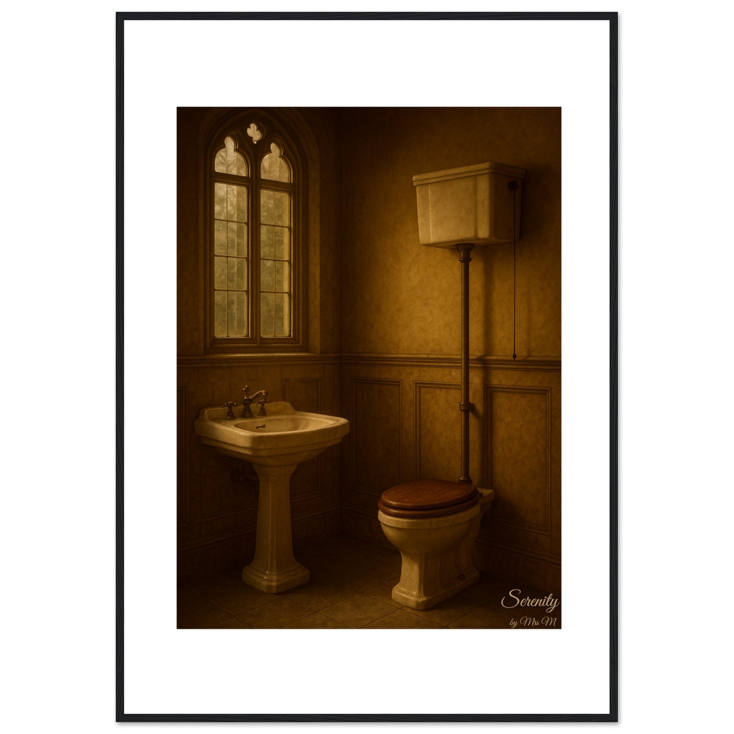 Step into a world of timeless elegance with our Gothic Romance Bathroom framed poster. This exquisite piece captures the serene and classic beauty of an old-world bathroom, bathed in a warm, inviting glow that evokes a sense of calm and nostalgia. It's more than just a print; it's a window to a tranquil moment, perfect for adding character and sophistication to any room.