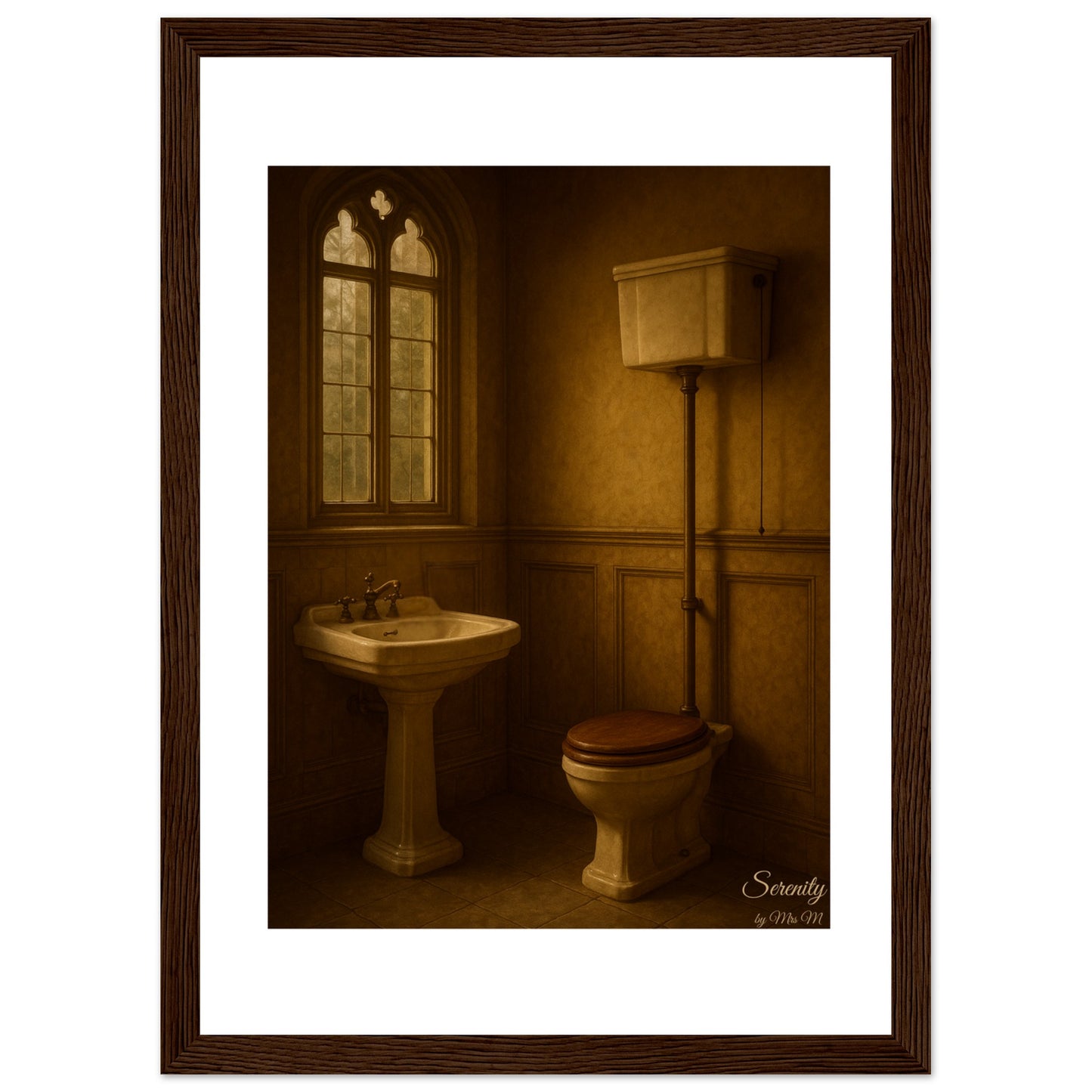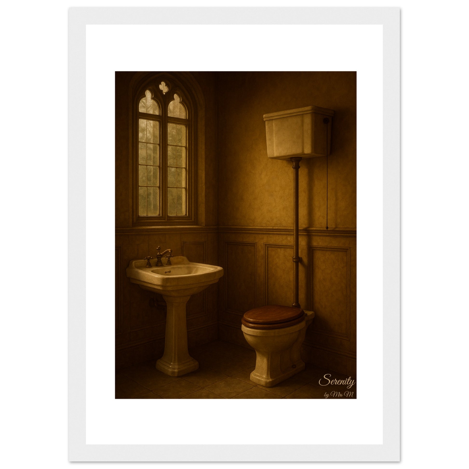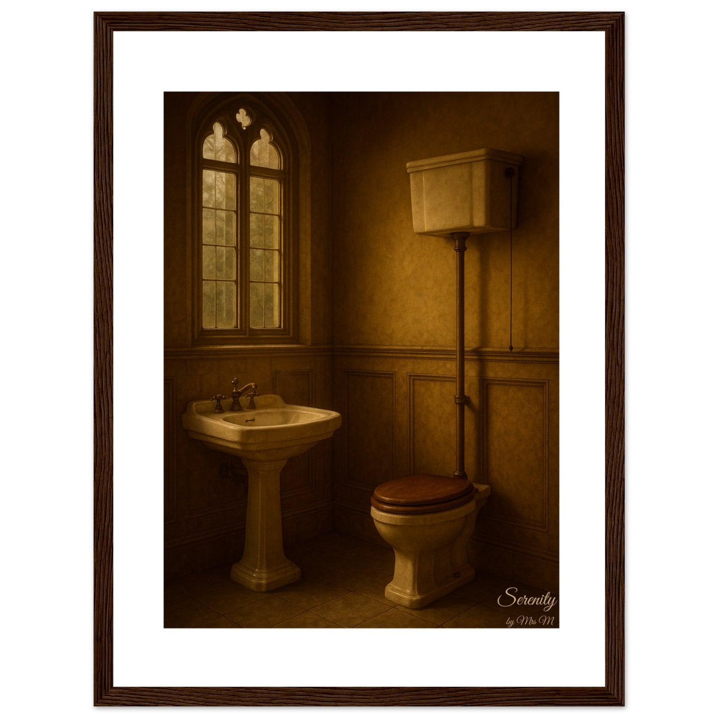 Step into a world of timeless elegance with our Gothic Romance Bathroom framed poster. This exquisite piece captures the serene and classic beauty of an old-world bathroom, bathed in a warm, inviting glow that evokes a sense of calm and nostalgia. It's more than just a print; it's a window to a tranquil moment, perfect for adding character and sophistication to any room.