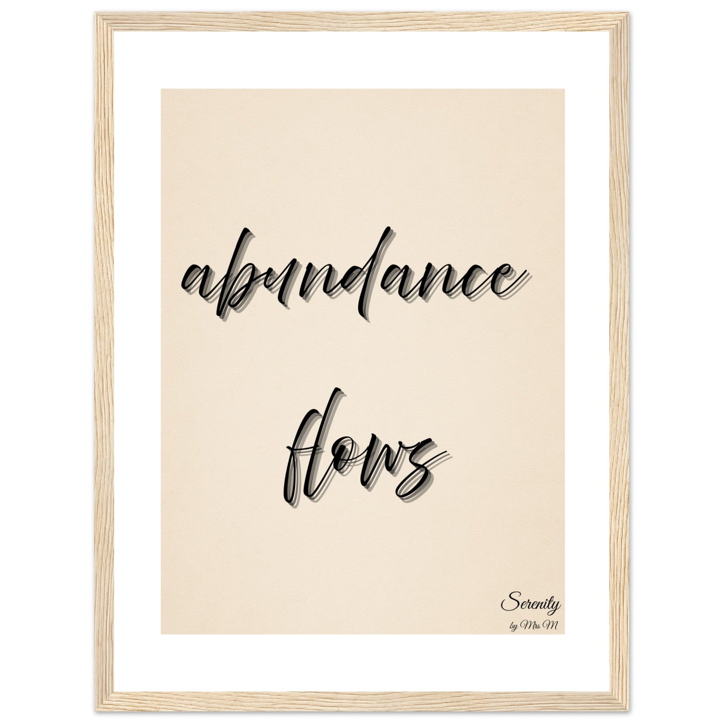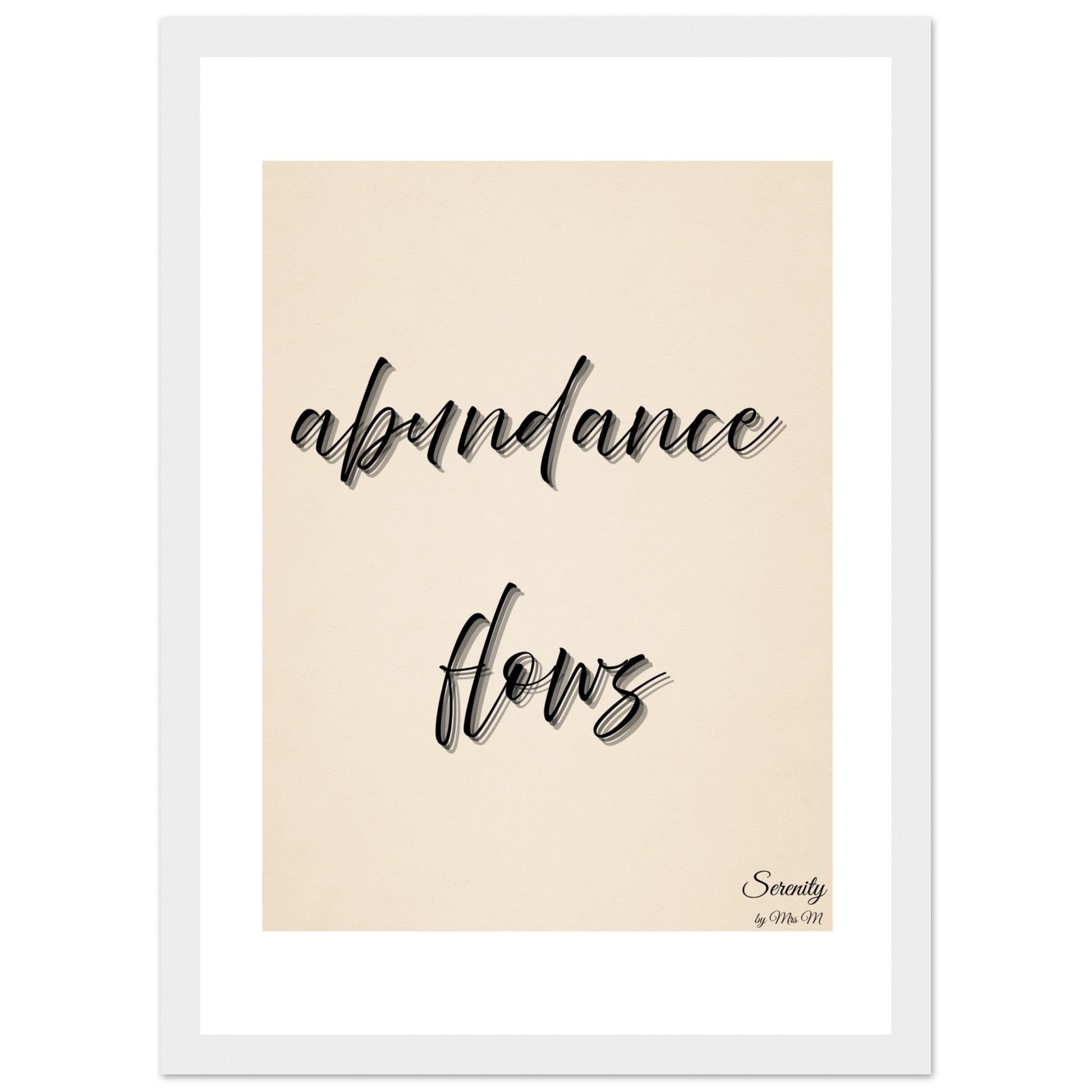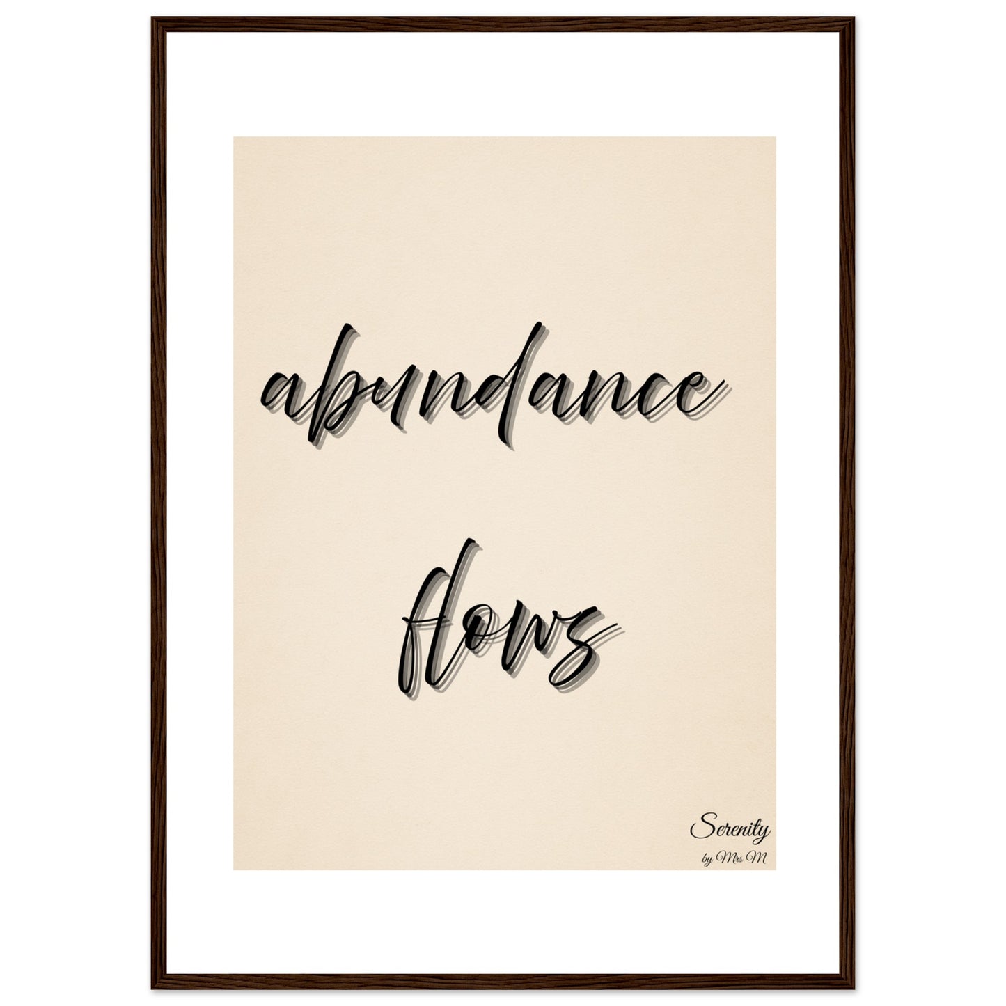 Invite positive energy and serene motivation into your space with our "abundance flows" framed poster. This elegant script art, set against a calming cream background, serves as a beautiful daily reminder to embrace prosperity and well-being. Crafted to inspire, it's the perfect accent for your home office, meditation corner, or living room.