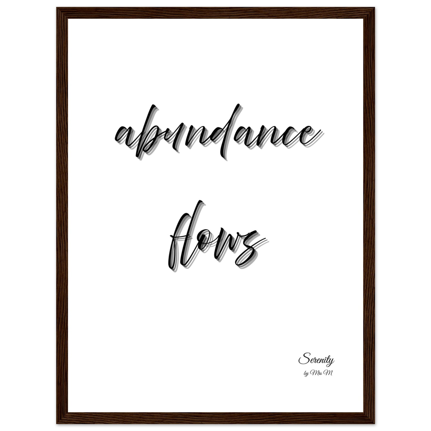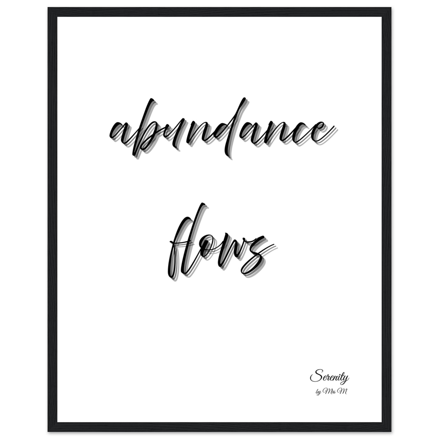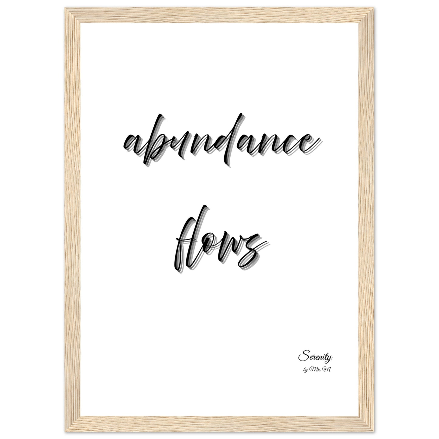 Invite positive energy and a sense of calm into your space with our "abundance flows" framed poster. Featuring elegant script and a serene, minimalist design, this artwork serves as a beautiful daily reminder to embrace the richness of life and trust in the flow of good fortune. Perfect for your meditation corner, office, or any room where you seek to cultivate peace and prosperity.