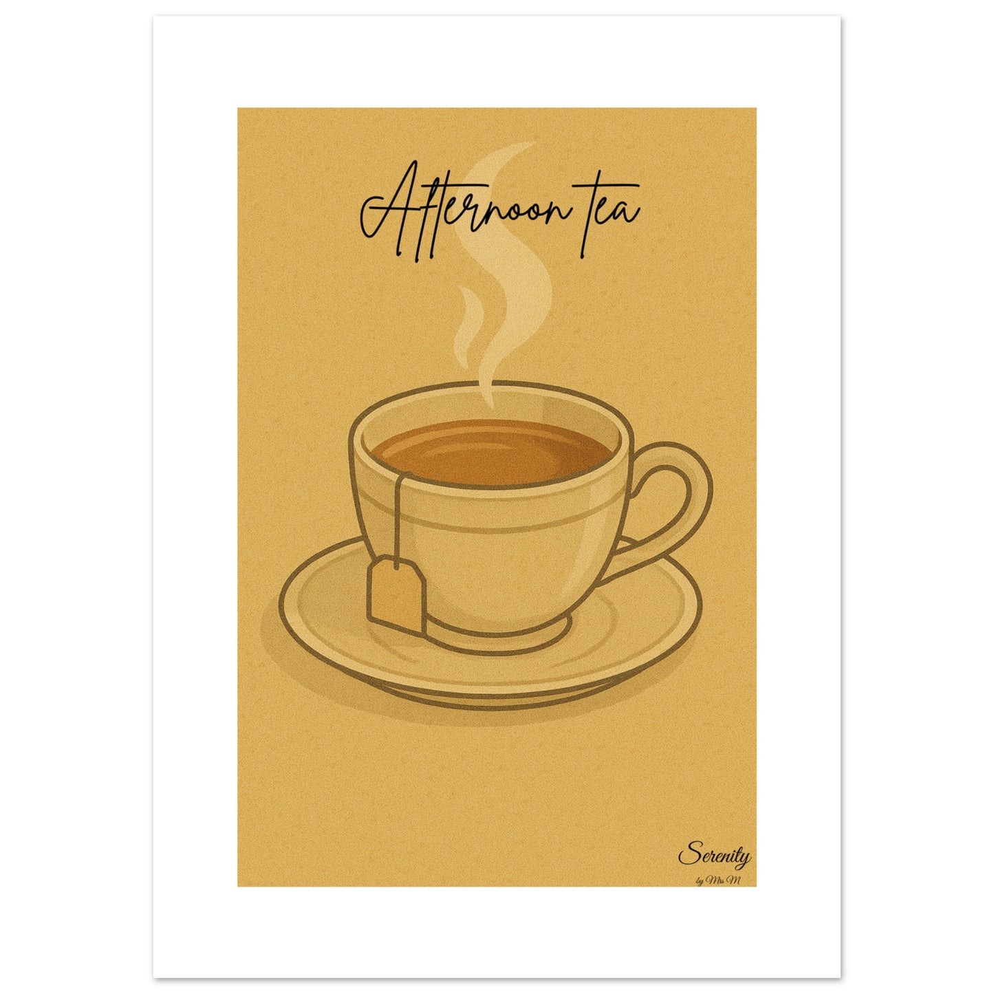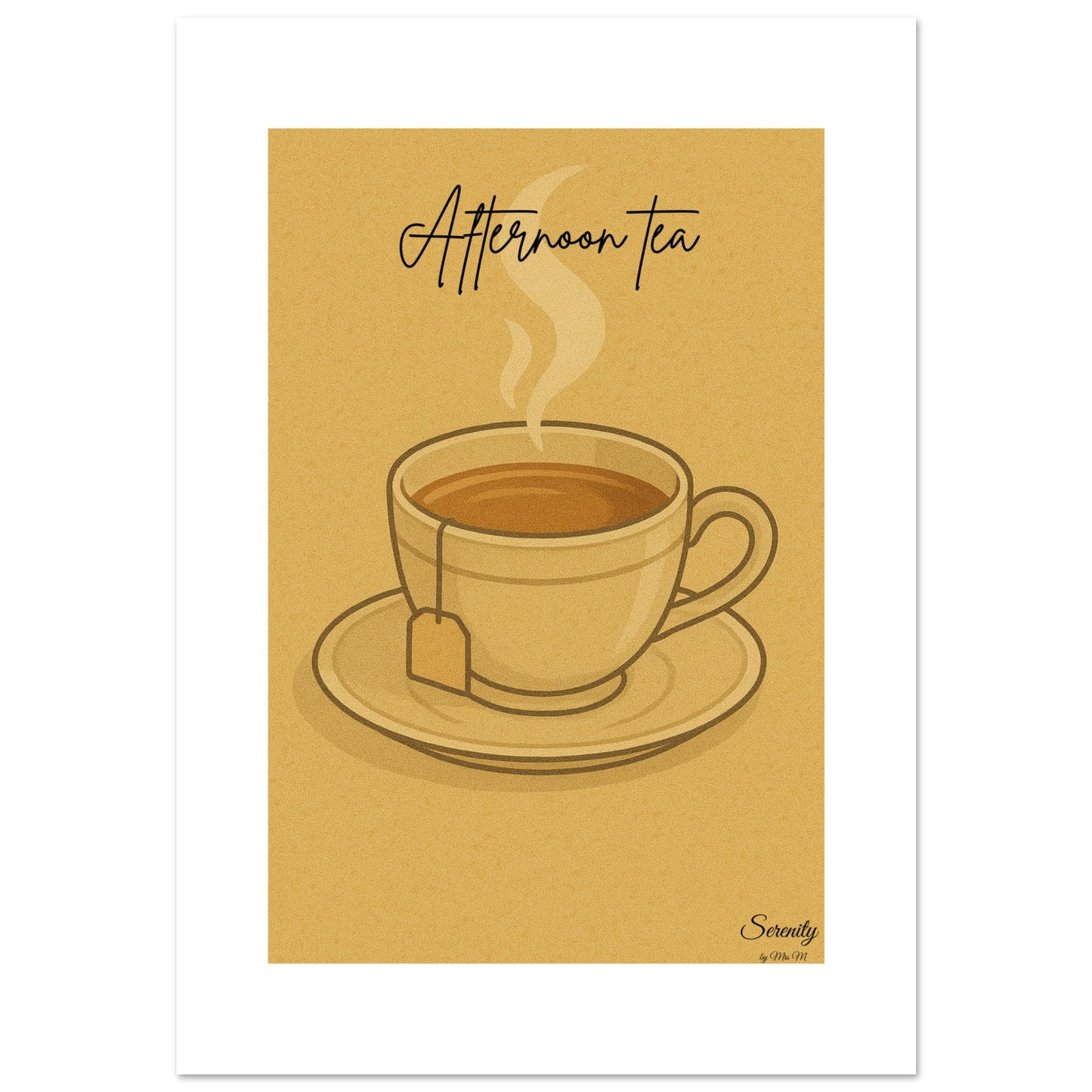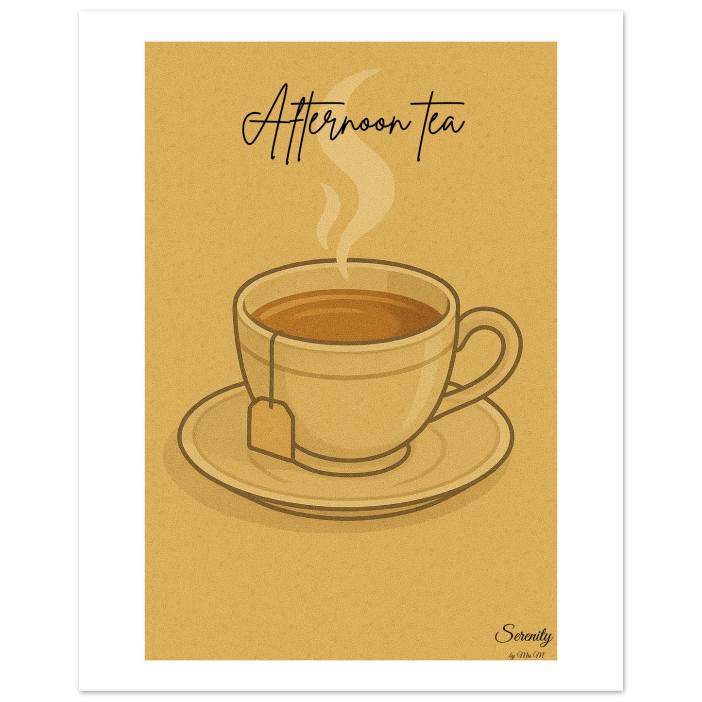 Indulge in a moment of tranquility with our "Afternoon Tea" poster, designed to infuse your space with a sense of calm and classic charm. Featuring a soothing palette of warm beige and comforting brown, this art print captures the gentle steam of a freshly brewed cup of tea, inviting you to pause and savor life's simple pleasures. It's the perfect accent for creating a cozy, inviting atmosphere in your kitchen, living room, or study, embodying the essence of serenity and understated elegance.