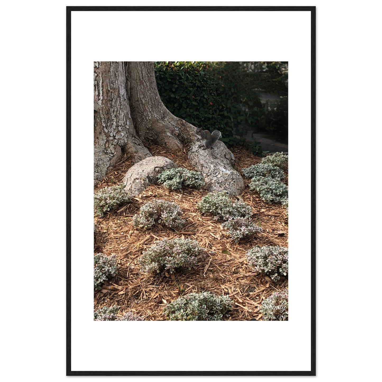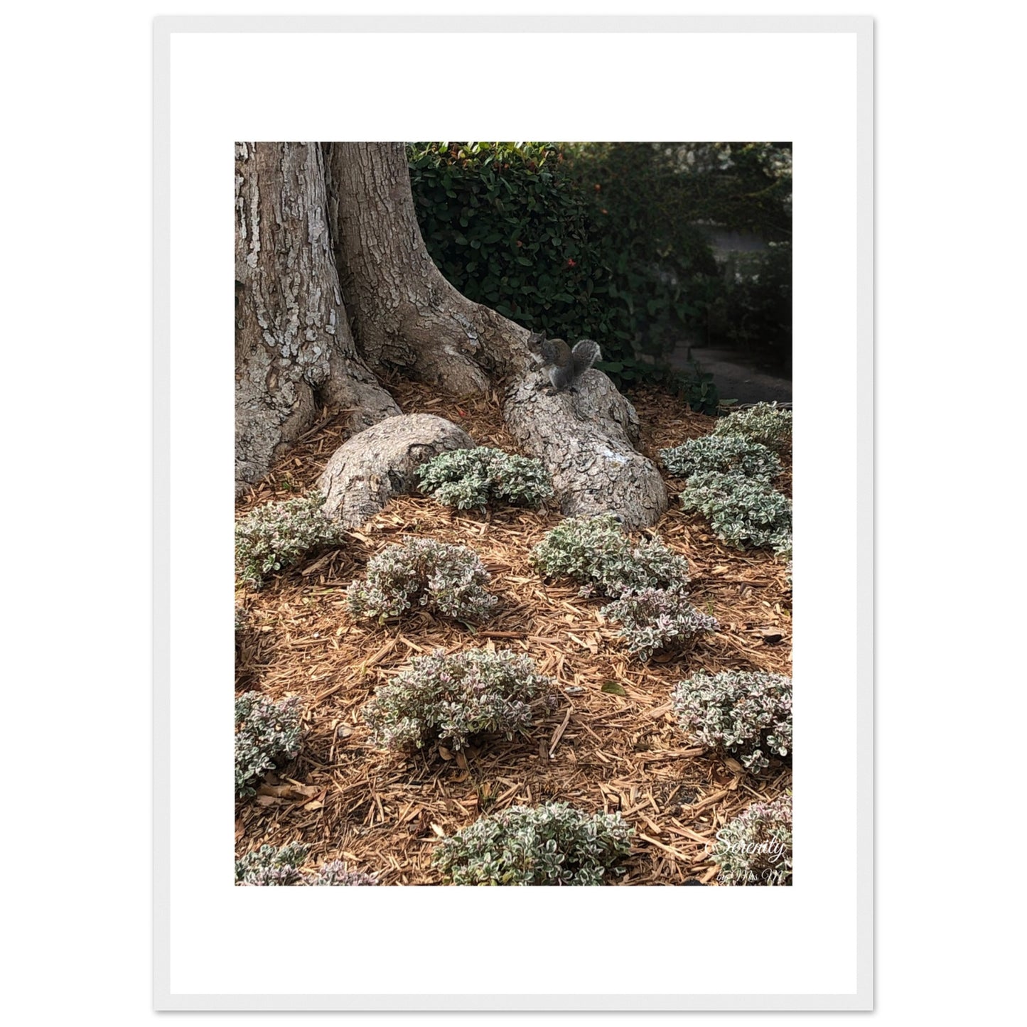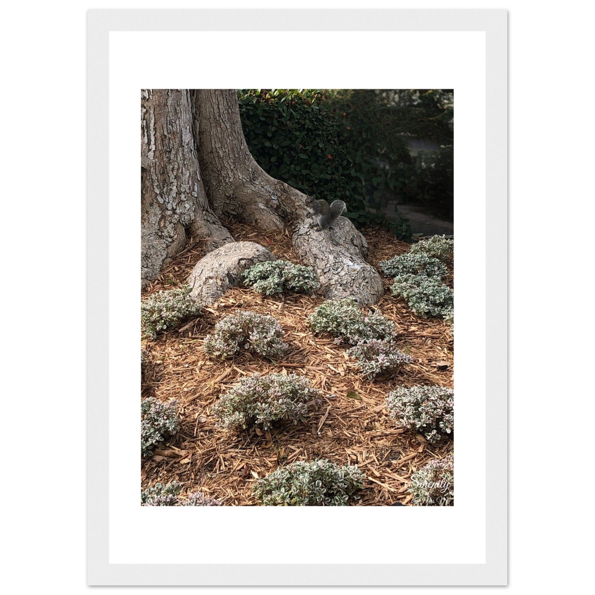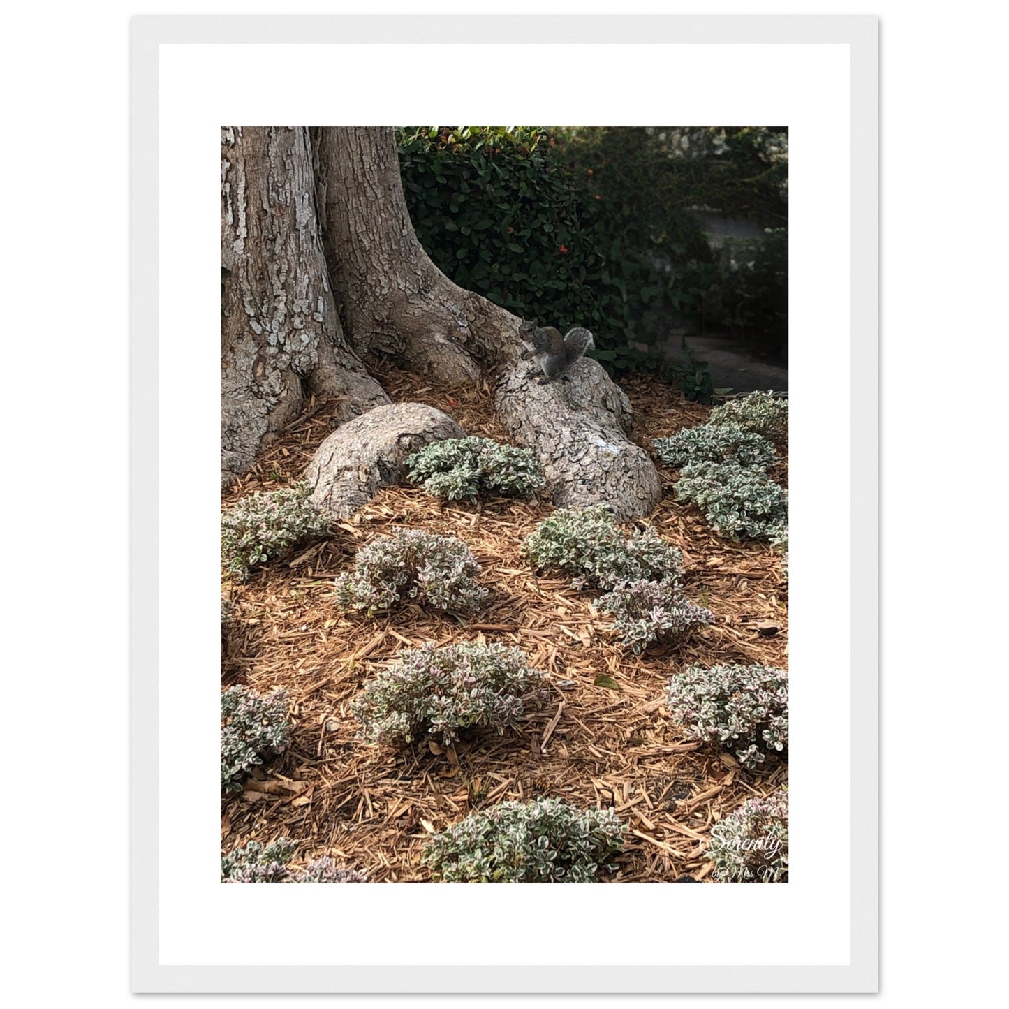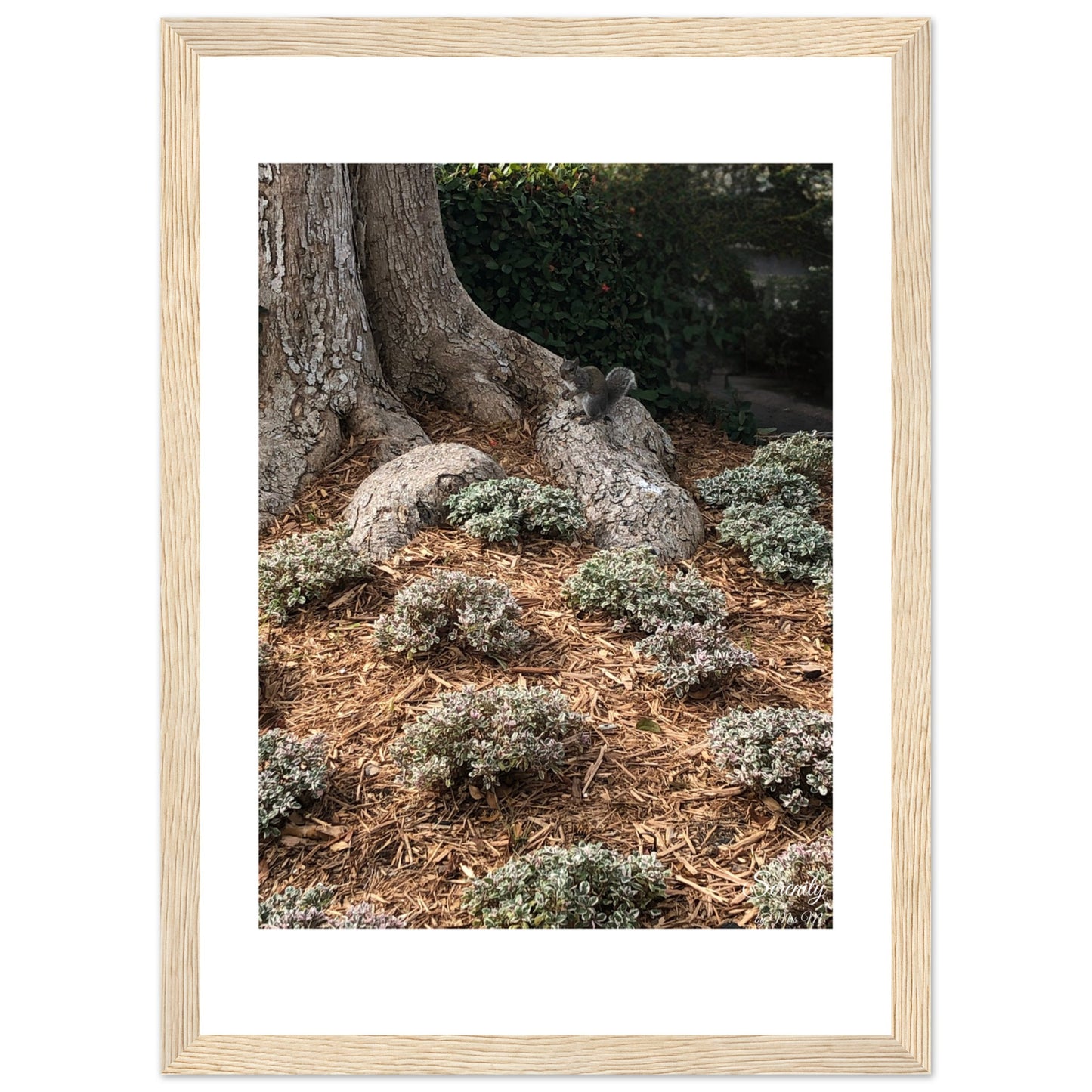 Bring the peaceful charm of a woodland moment into your home with this captivating framed poster. Featuring a delightful squirrel amidst lush greenery and the sturdy texture of an ancient tree, this piece evokes a sense of natural tranquility and curiosity. It's a perfect accent for any room seeking a touch of outdoor serenity and gentle wildlife.