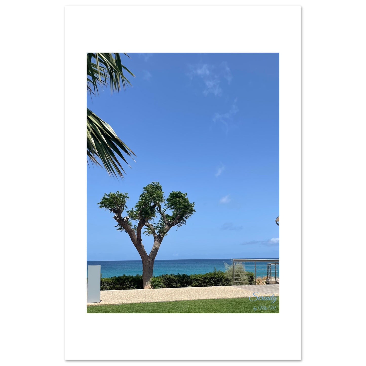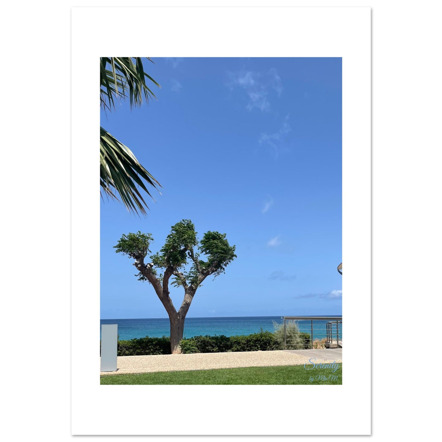 Bring the calm and beauty of a serene coastal landscape into your home with this stunning art print. Featuring a vibrant blue sky, the tranquil expanse of the ocean, and a distinctively shaped tree, this piece evokes feelings of peace and relaxation. Perfect for creating a serene oasis in any room, it’s a daily invitation to unwind and appreciate nature's artistry.