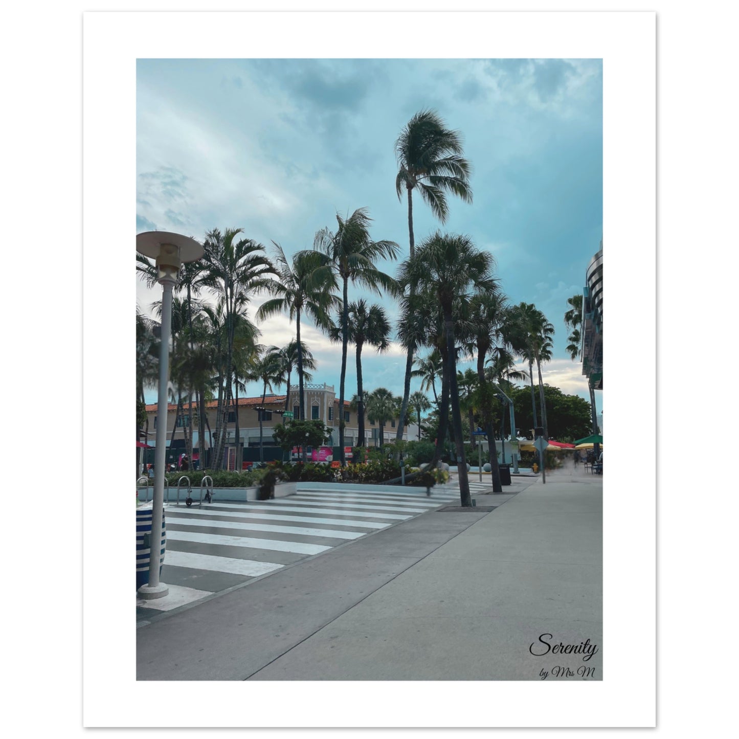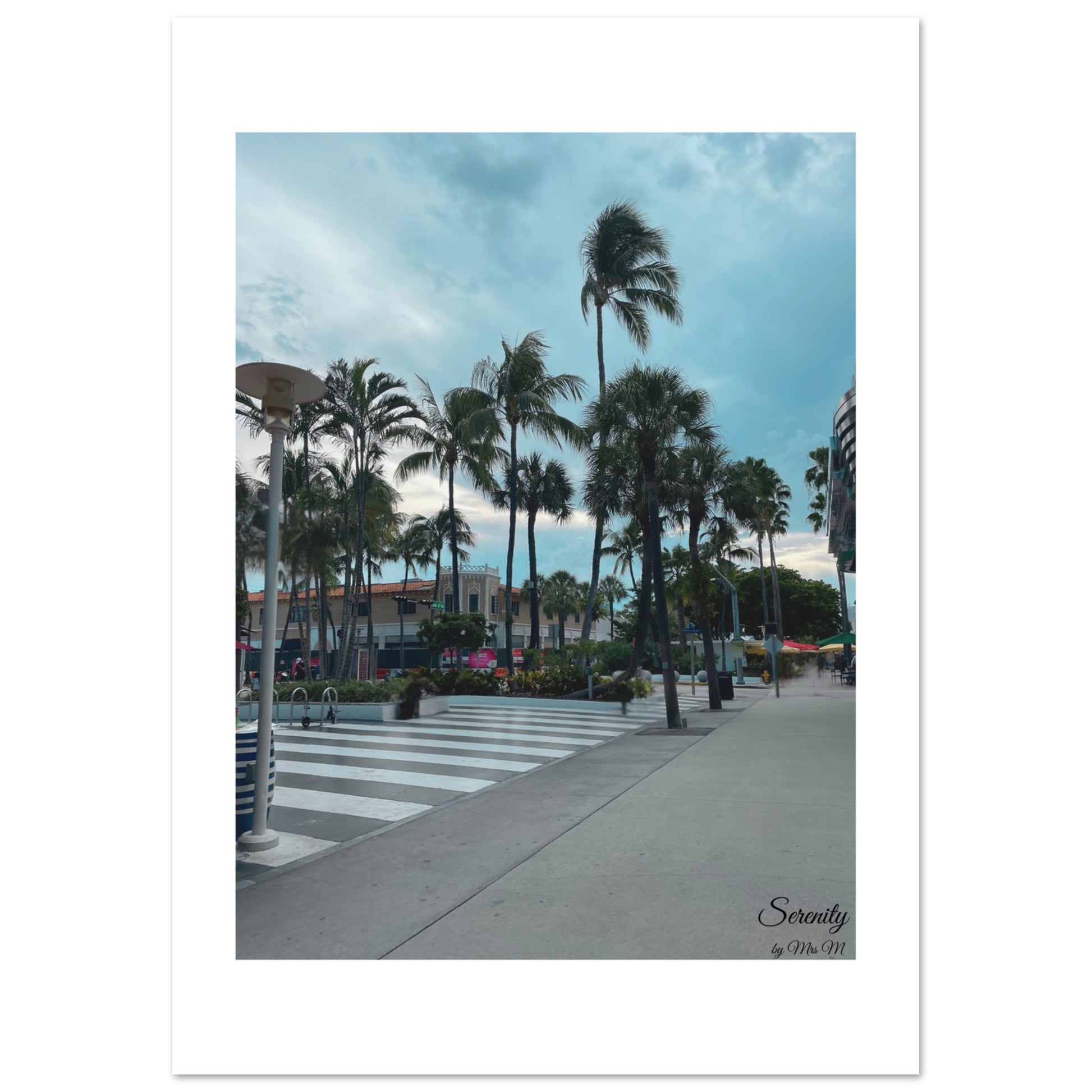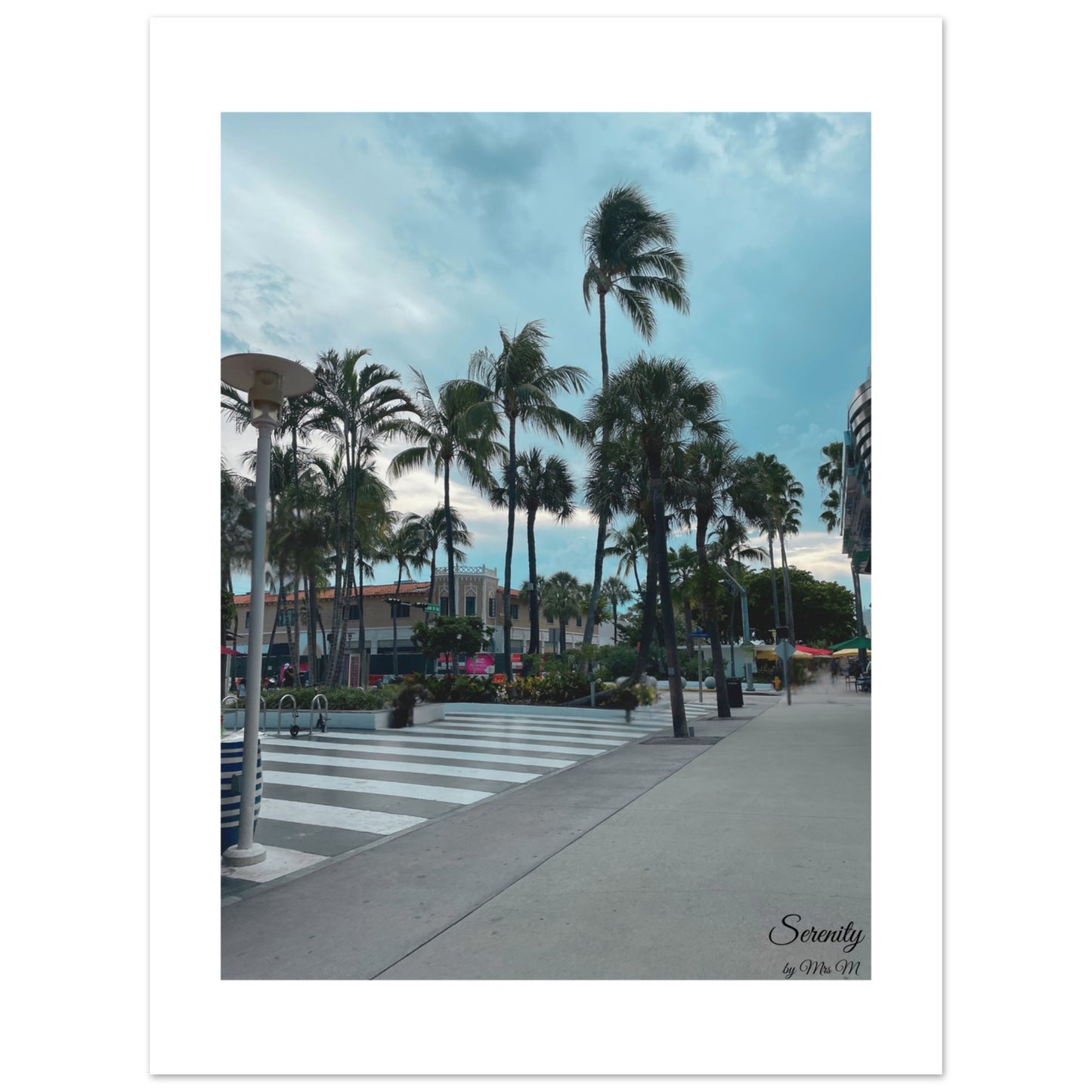 Escape to a tranquil coastal paradise with our 'Coastal Serenity' art print. This stunning poster captures the peaceful ambiance of a breezy afternoon, featuring lush palm trees swaying gently against a backdrop of a soft, cloudy blue sky. The serene palette and natural elegance of this piece bring a touch of relaxation and sophisticated calm to any room, transforming your space into a personal oasis.