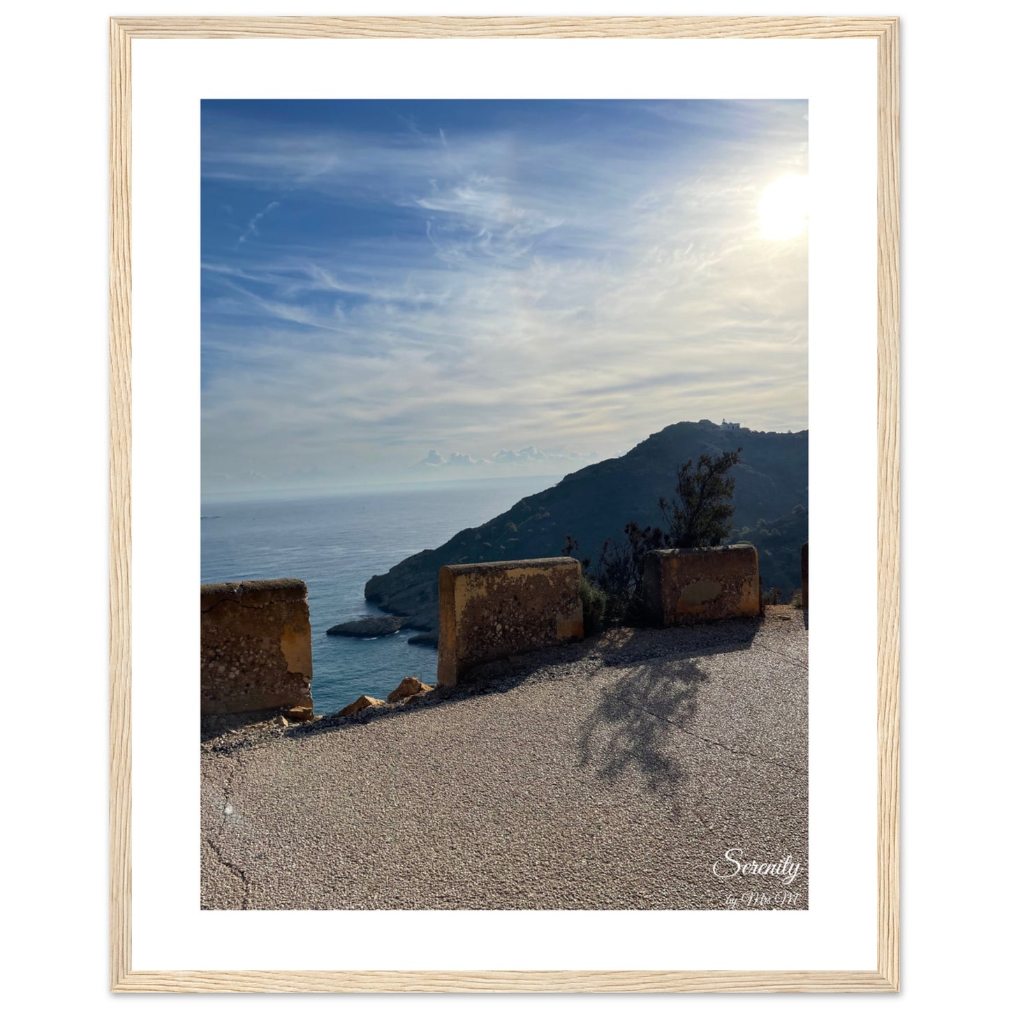 Bring the tranquil beauty of a sun-drenched coastal vista into your home with our Golden Hour Ocean View framed poster. Imagine gazing out at the endless blue horizon, where the sea meets the sky and rugged cliffs cradle the shore. This stunning piece captures that breathtaking moment, inviting a sense of peace and expansive calm into any room. It's more than just a picture; it's a window to a serene escape, perfect for creating an atmosphere of relaxation and inspiration.