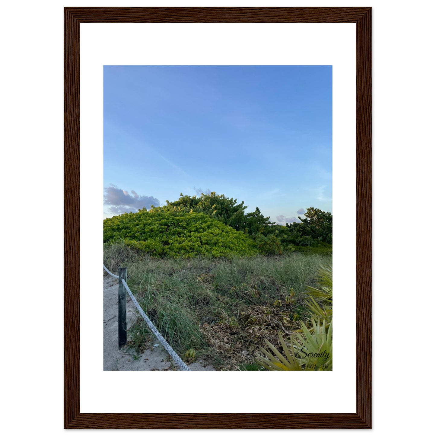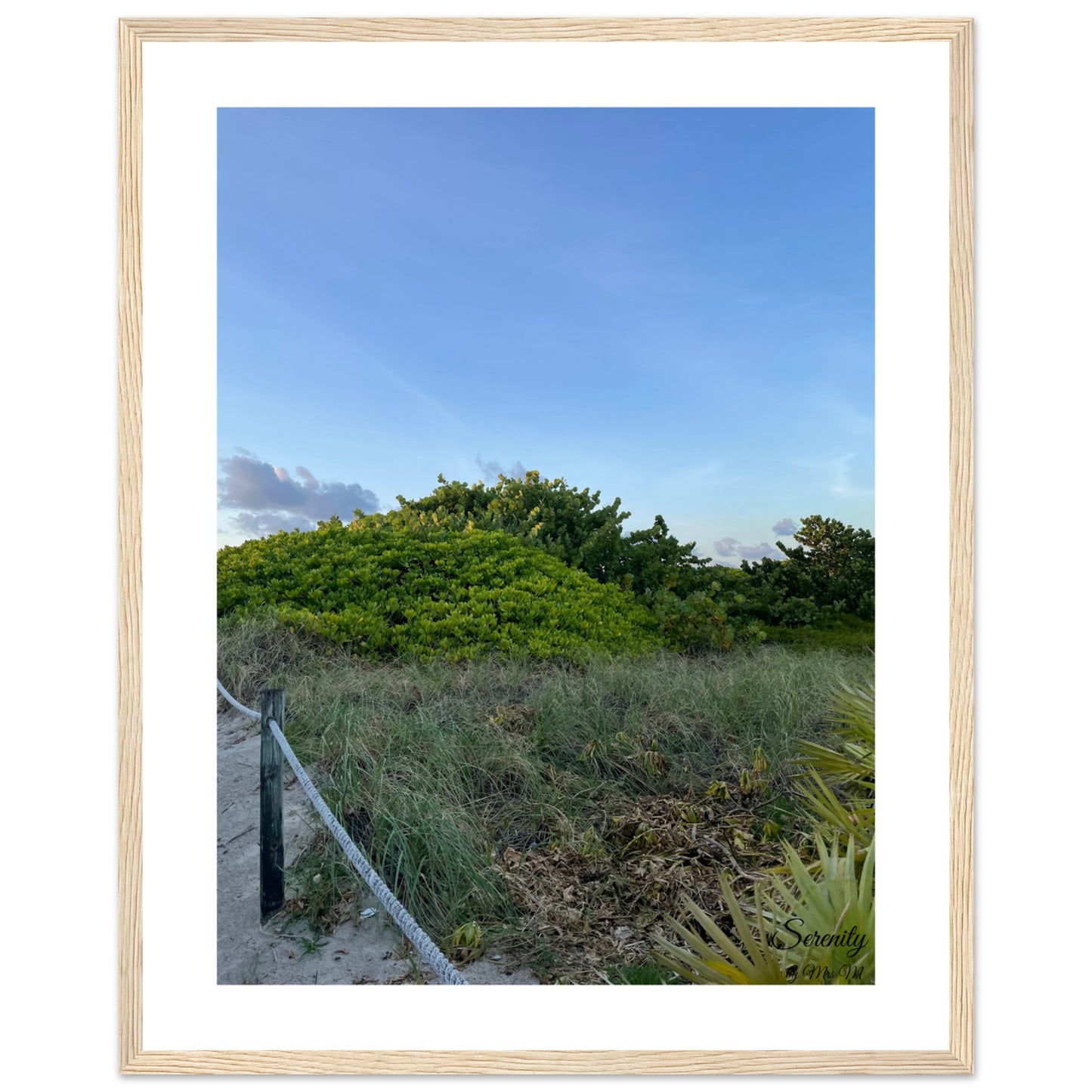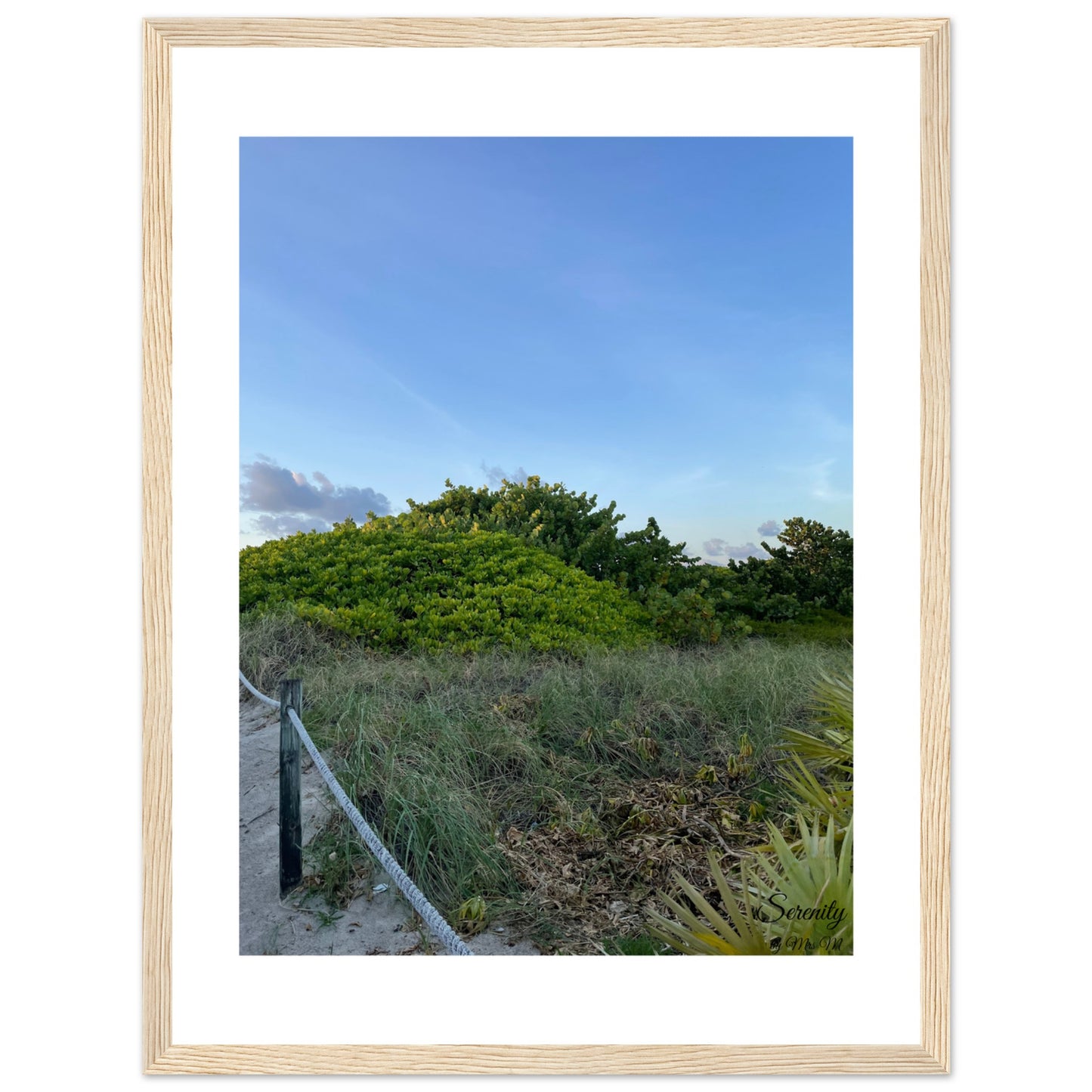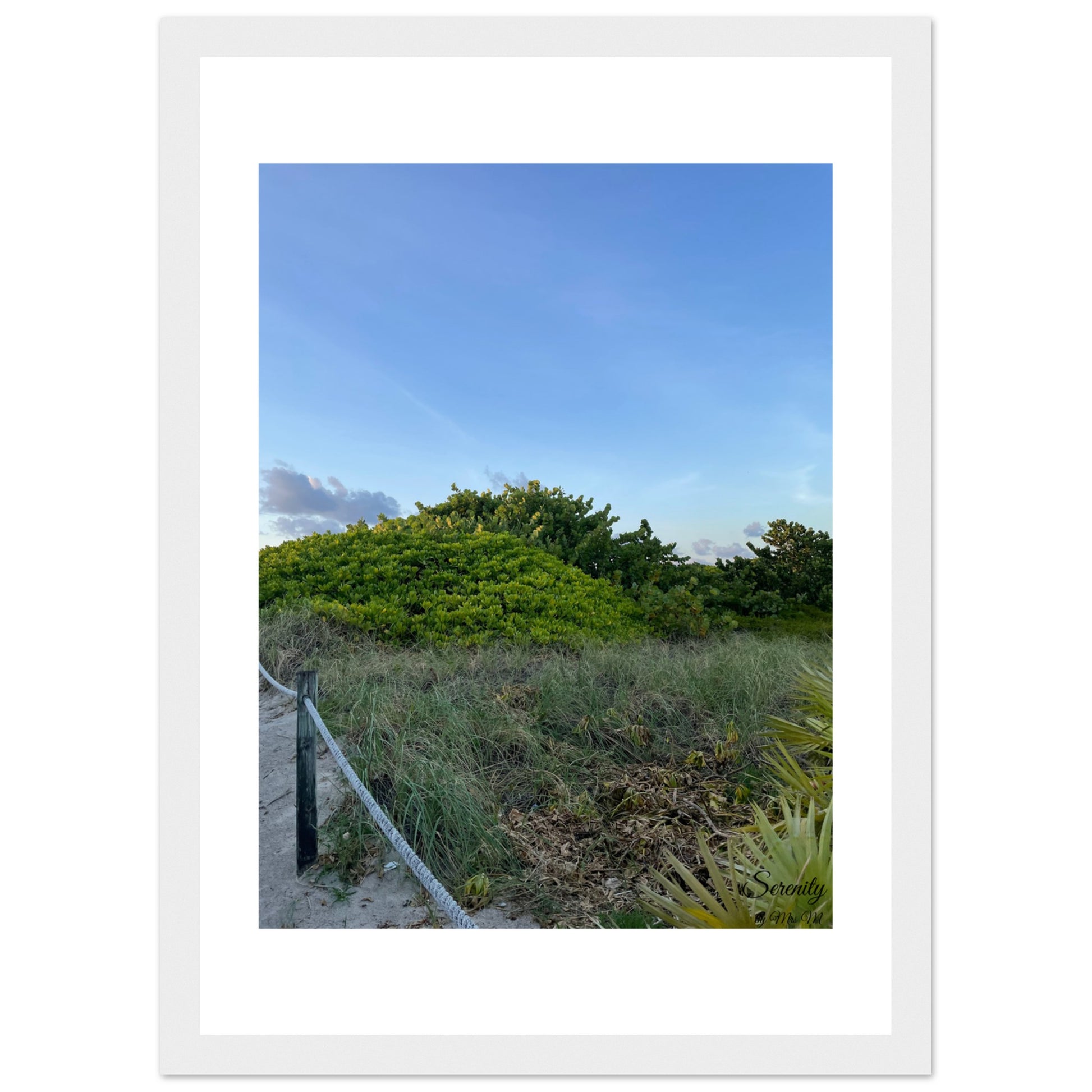 Escape to the serene beauty of the coast every day with our "Coastal Serenity Vibrant Beachside Foliage" framed poster. This artwork captures the peaceful essence of a sun-drenched beach path, inviting a calm and refreshing atmosphere into any room. The gentle hues of blue sky and lush greenery, accented by the soft textures of sand and natural foliage, create a tranquil escape that will soothe your senses and inspire moments of quiet reflection.