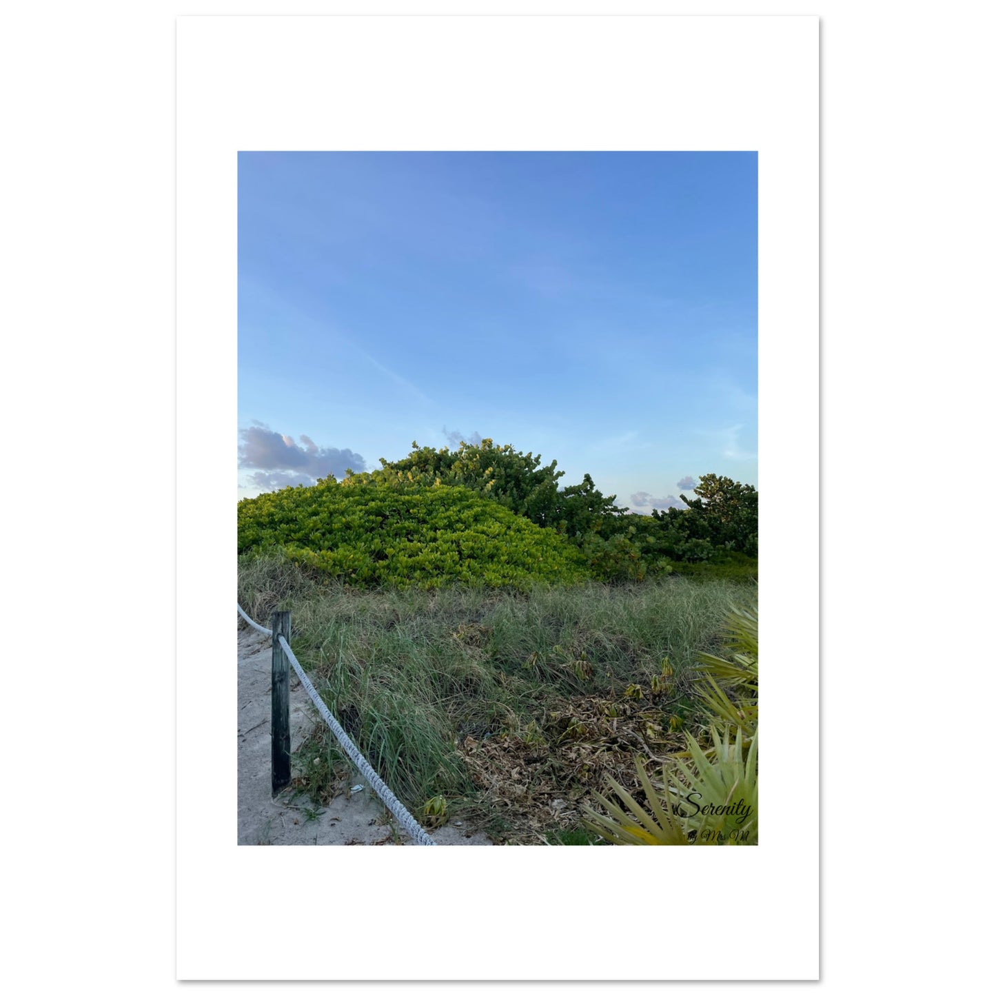 Bring the tranquil beauty of the coast into your home with our "Coastal Serenity Vibrant Beachside Foliage" poster. This vibrant print captures a peaceful beachside scene, featuring lush green foliage under a clear, expansive sky, evoking a sense of calm and natural escape. The gentle color palette and serene mood make it a perfect addition to any space seeking a touch of nature's tranquility.