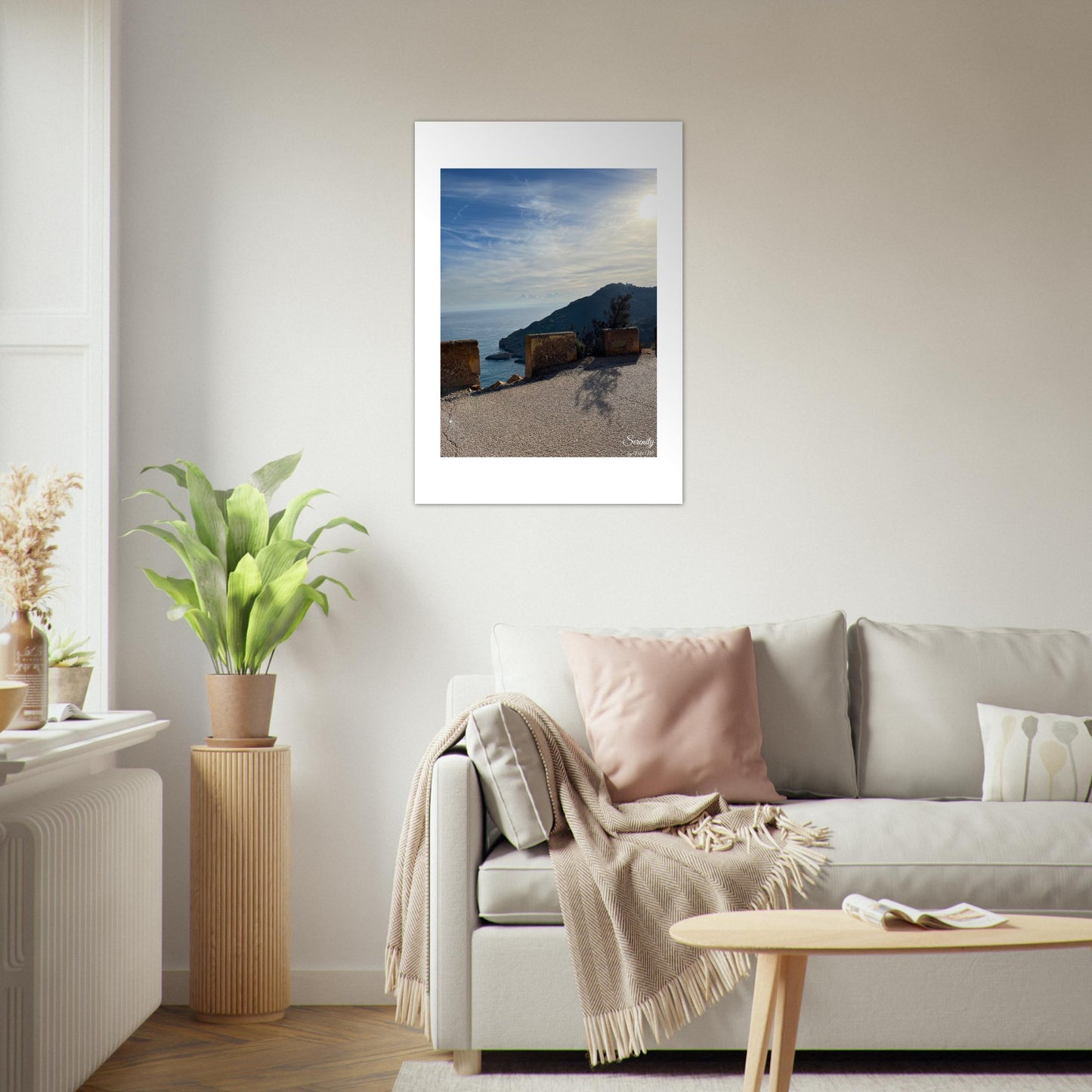 Bring the tranquil beauty of a sun-drenched coast into your home with our Golden Hour Ocean View Poster. This captivating print, featuring a breathtaking ocean view under a vast, wispy sky and the warm glow of the sun, invites a sense of peace and natural wonder into any space. It’s perfect for creating a focal point in your living room, bedroom, or office, offering a daily escape to a serene seaside landscape.