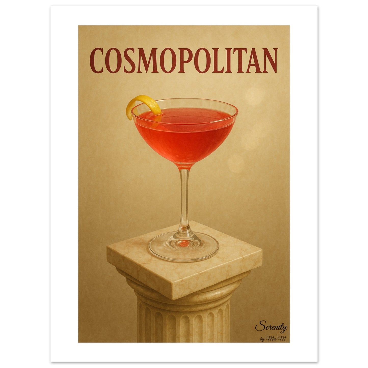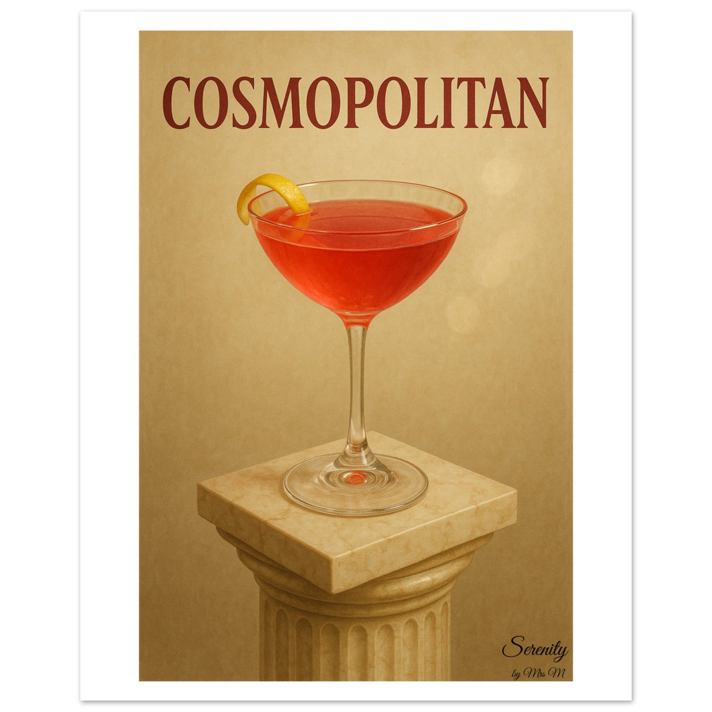 Elevate your home bar or living space with a touch of timeless sophistication! This exquisite 'Cosmopolitan' cocktail poster captures the allure of a classic drink, rendered with a rich, inviting palette that evokes an atmosphere of refined enjoyment. Whether you're a connoisseur of cocktails or simply appreciate chic, vintage-inspired art, this piece brings a splash of elegant charm to any room.