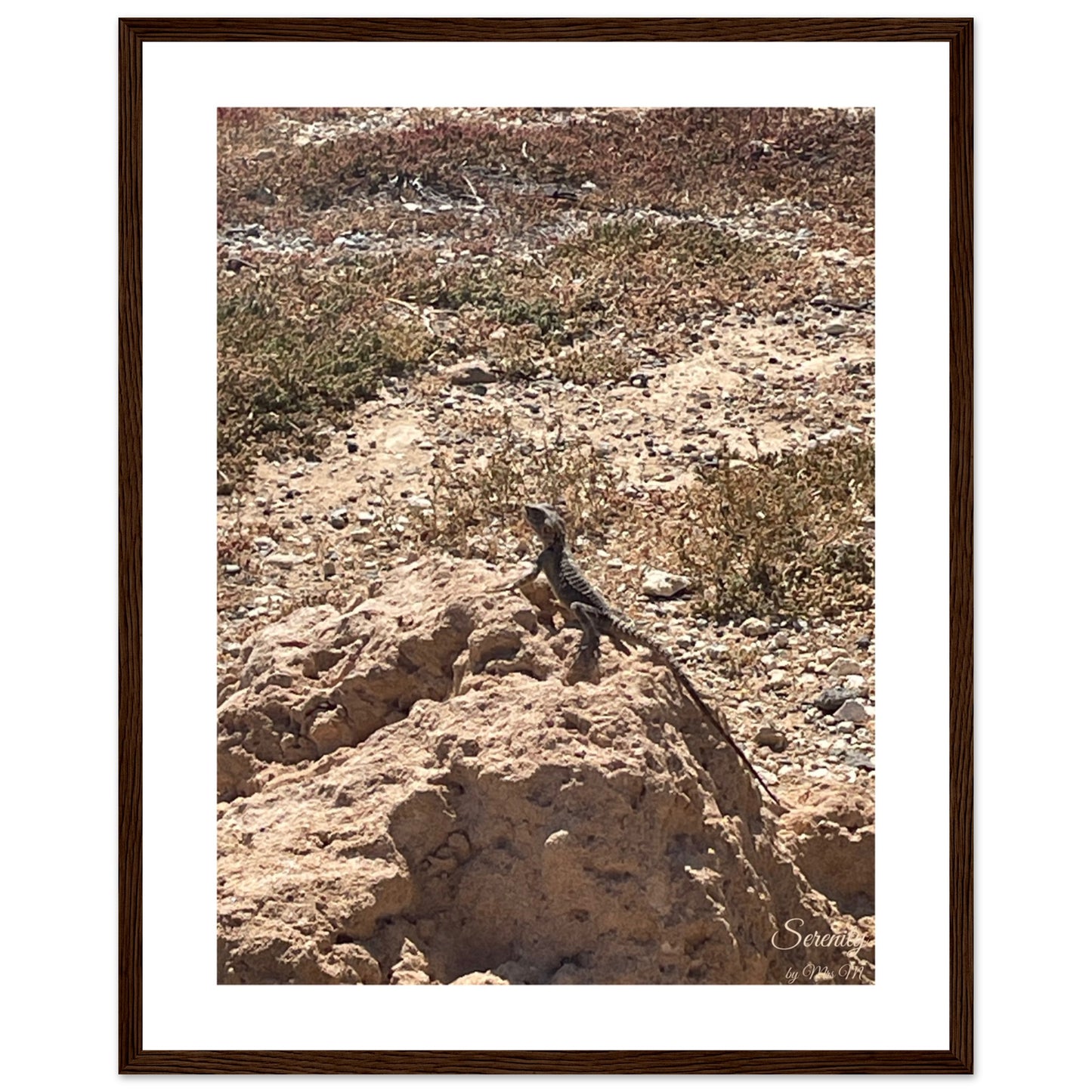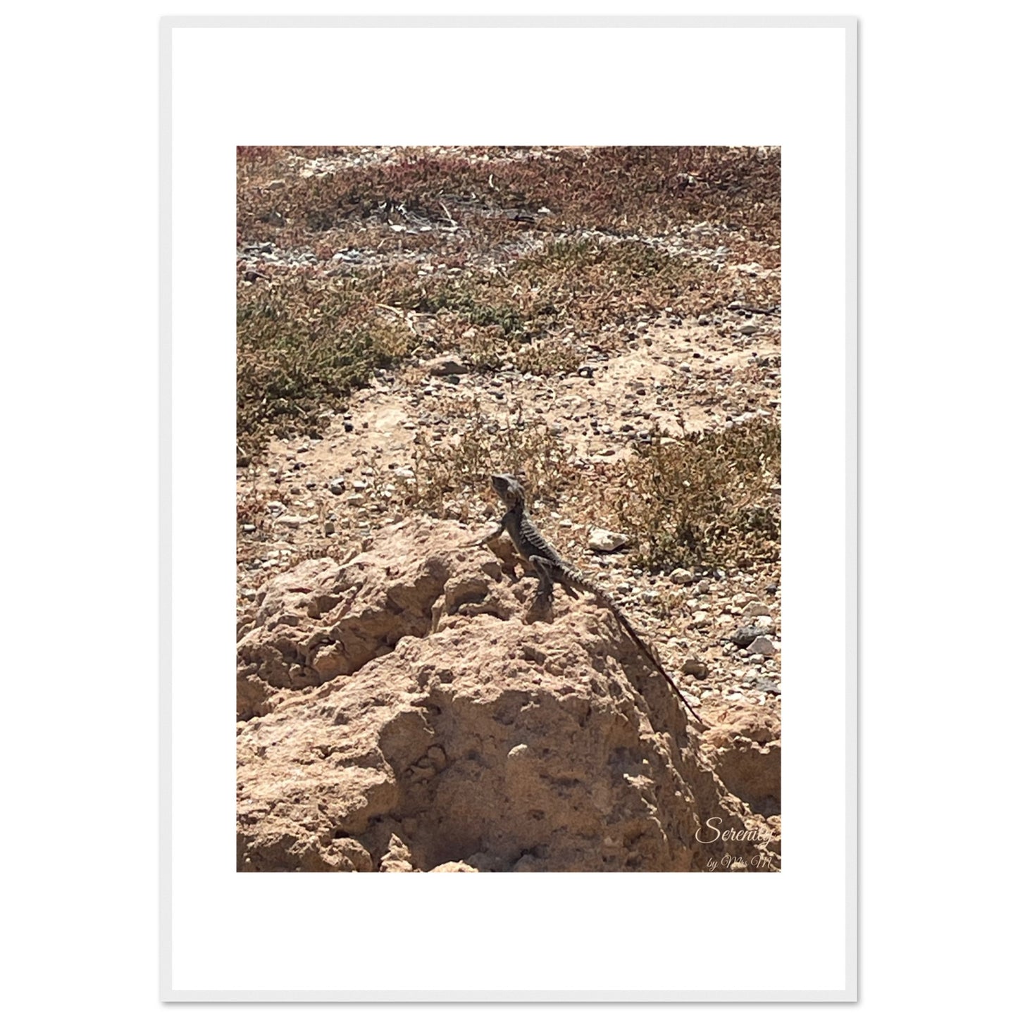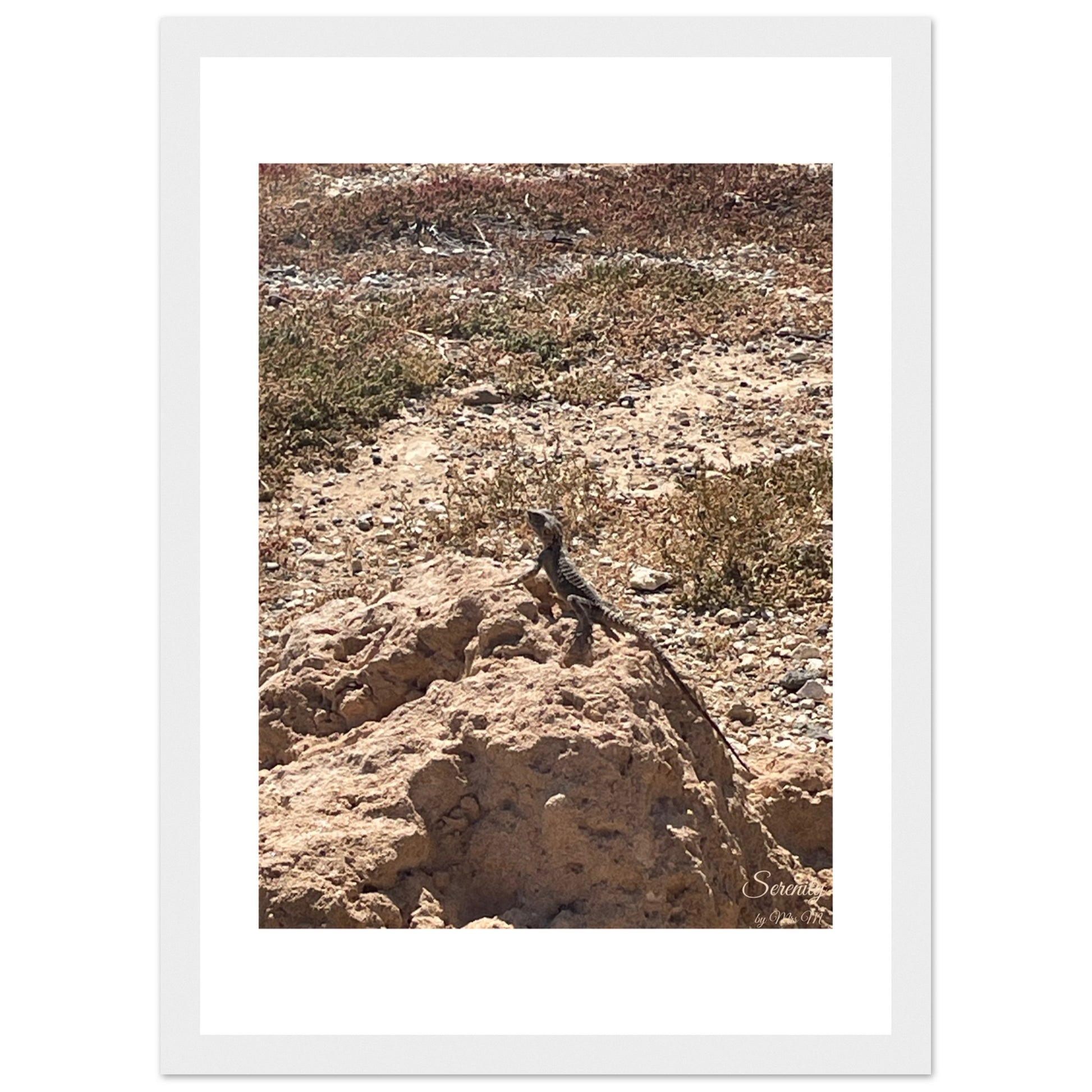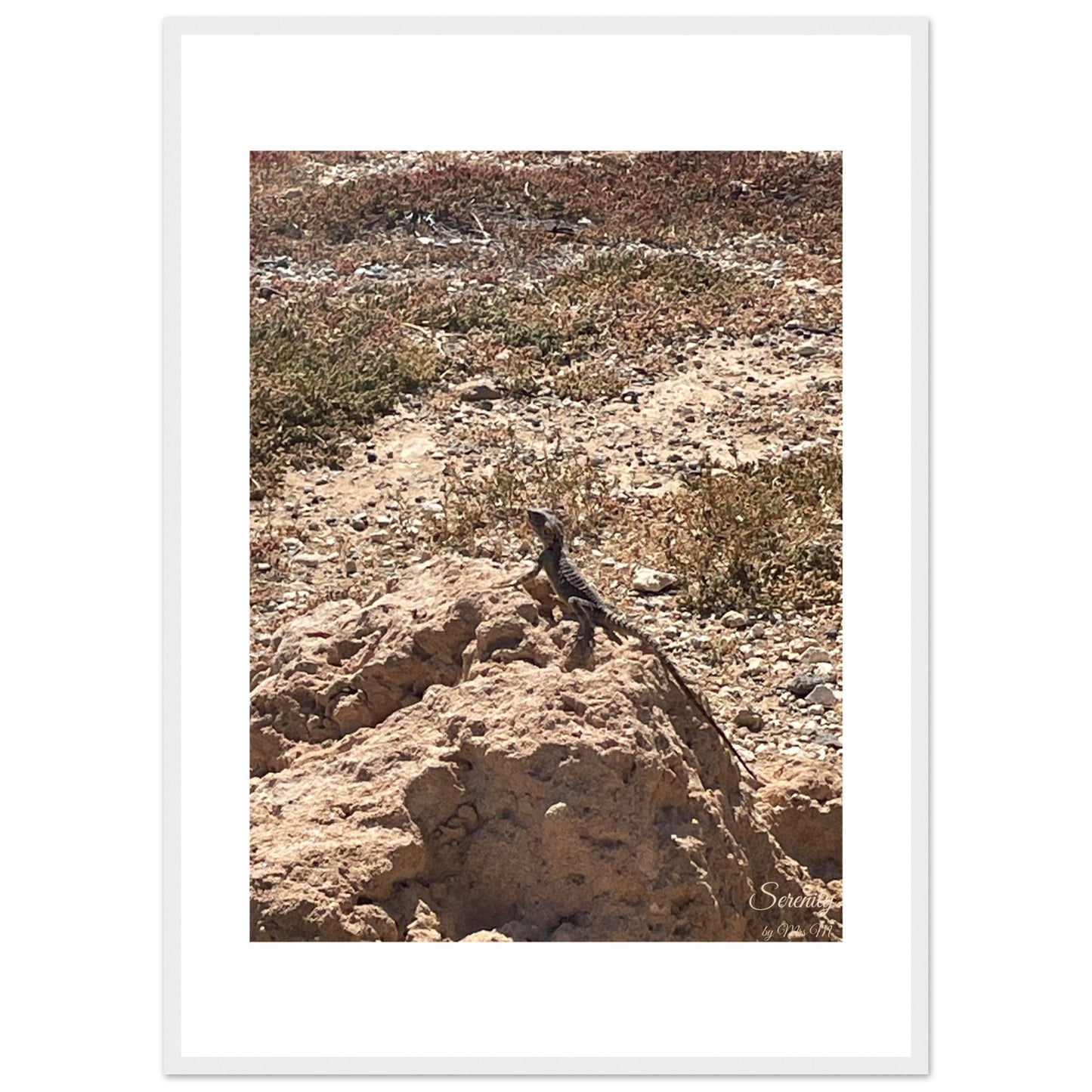 Bring the tranquil spirit of the desert sun into your home with this captivating framed poster, featuring a watchful lizard basking in the warmth. The earthy tones and subtle textures create a serene and natural ambiance, perfect for adding a touch of peaceful wildlife to any room. It’s an ideal piece for nature lovers and those who appreciate the quiet beauty of the wild, offering a moment of calm reflection every time you glance at it.