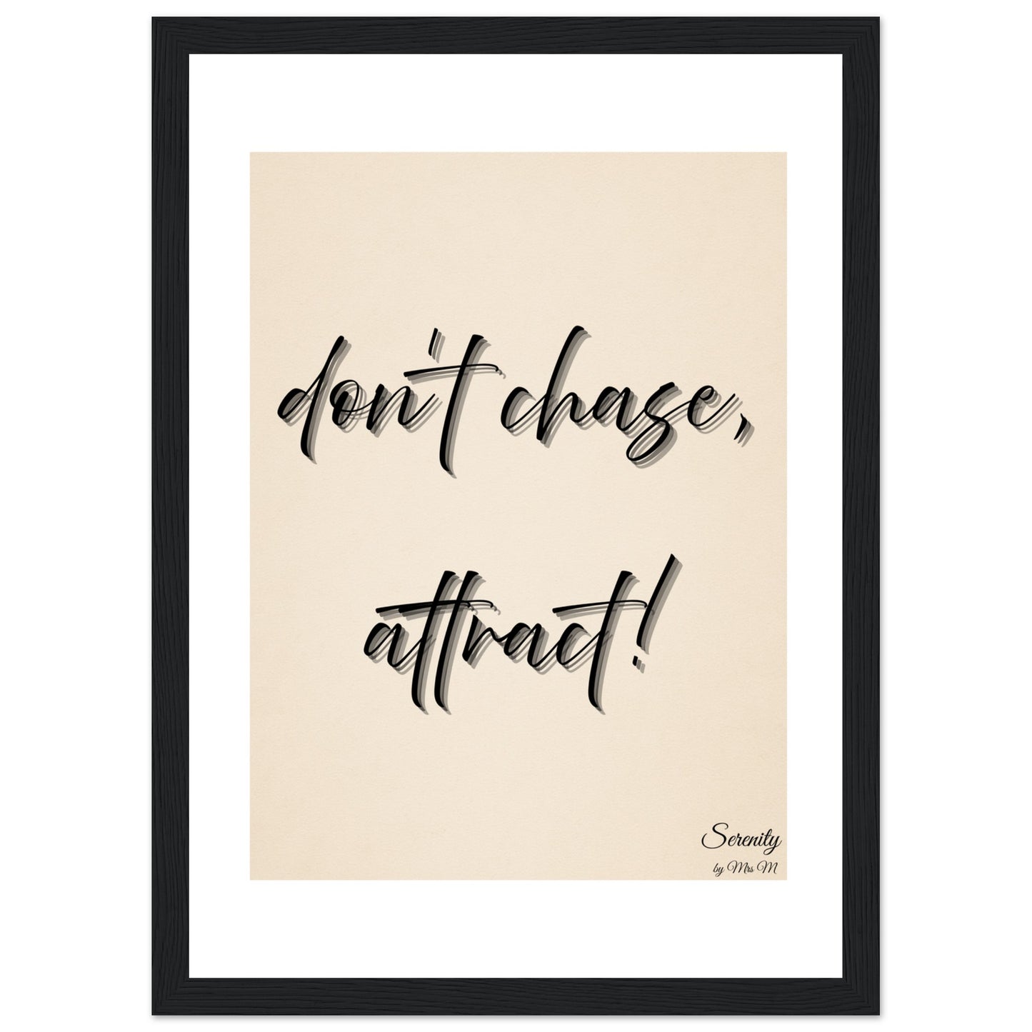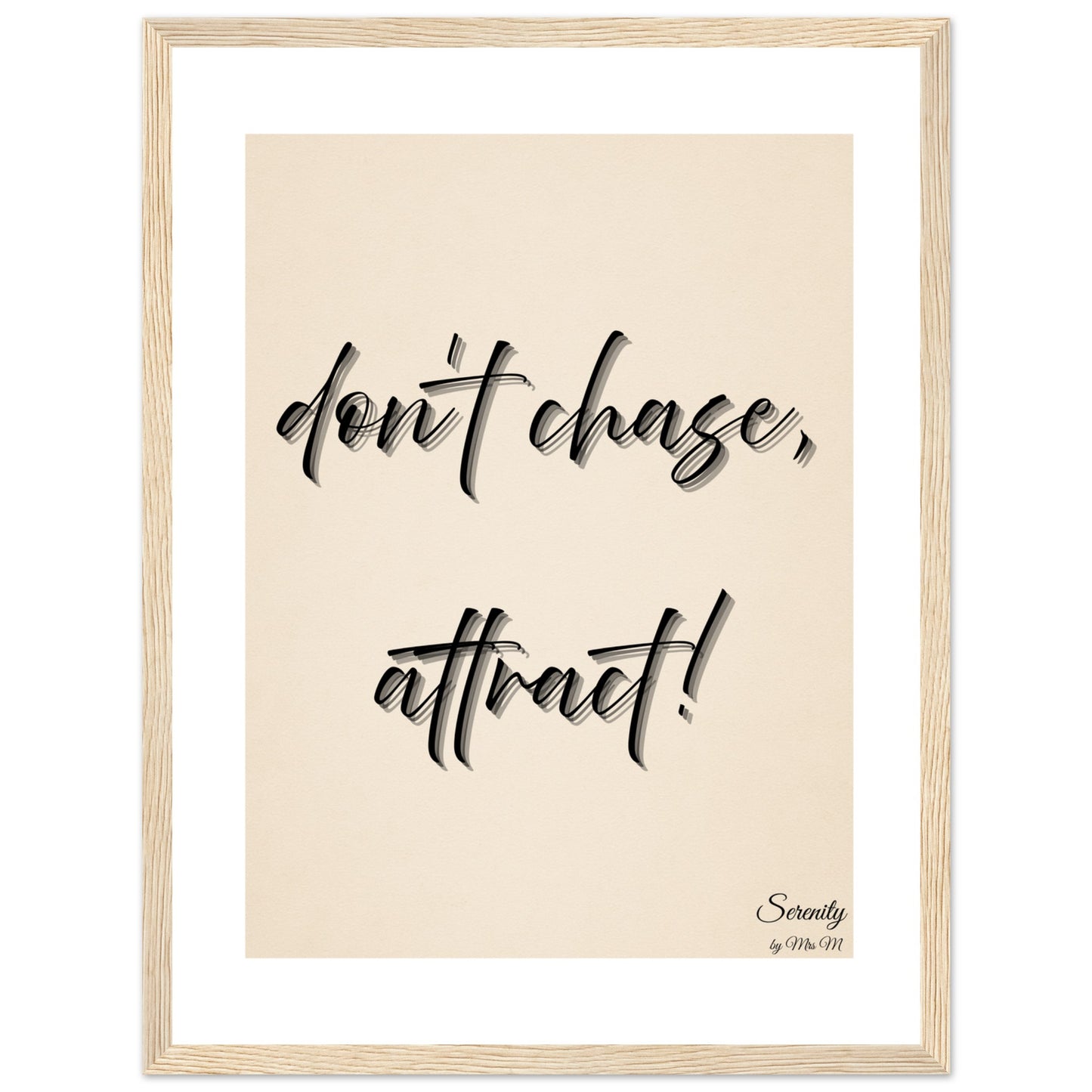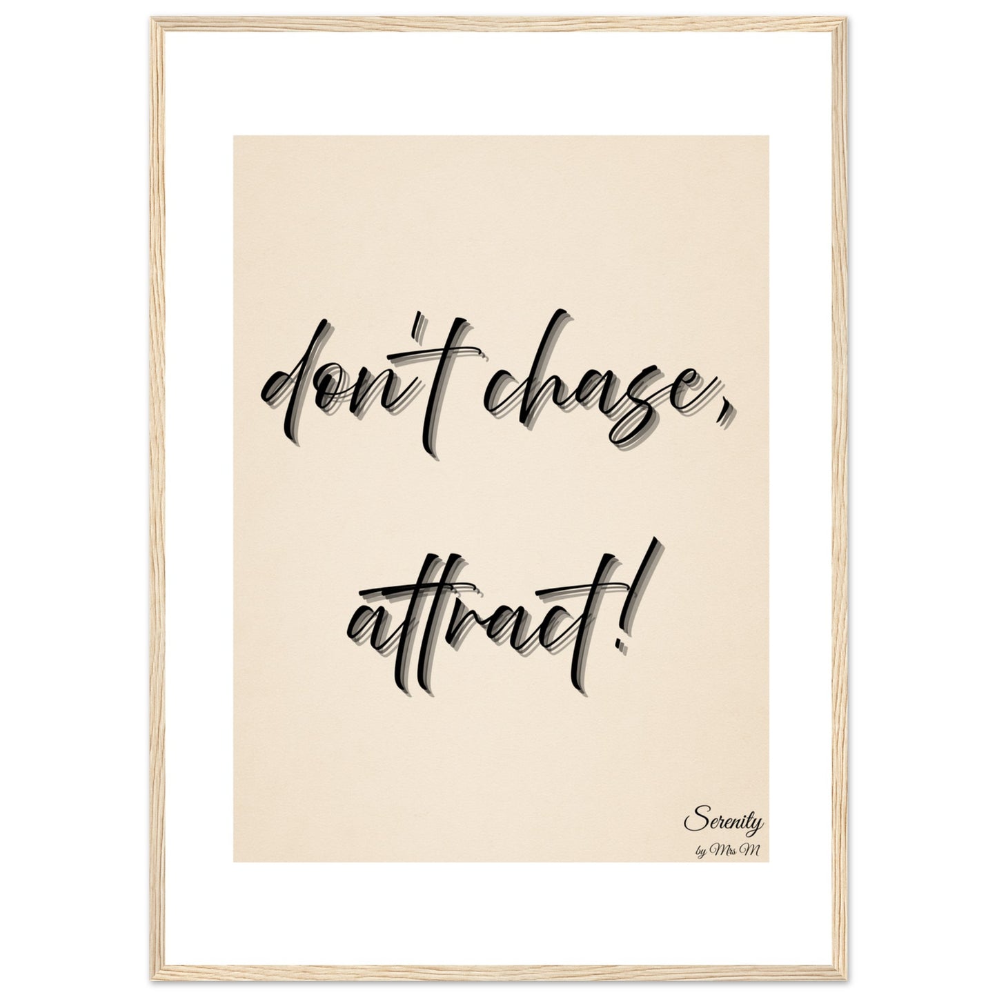 Elevate your space and mindset with our "don't chase, attract!" framed poster. Featuring elegant, layered typography on a serene beige background, this piece from the 'Serenity by Mrs M' collection serves as a beautiful, daily reminder to focus on manifestation and the power of attraction. Perfect for your office, bedroom, or living area, it brings a calm yet empowering vibe to any room, encouraging you to align with your desires and let them come to you.