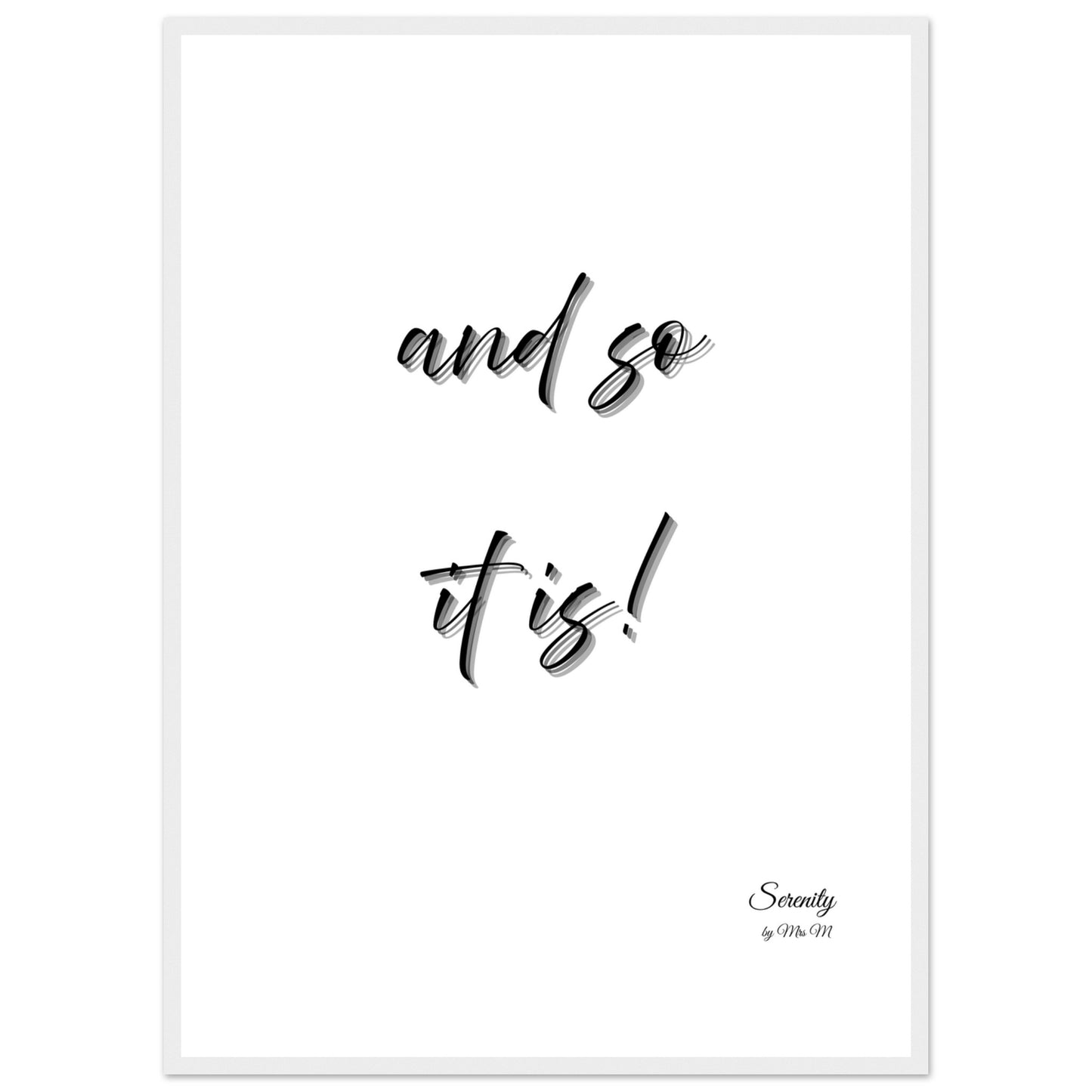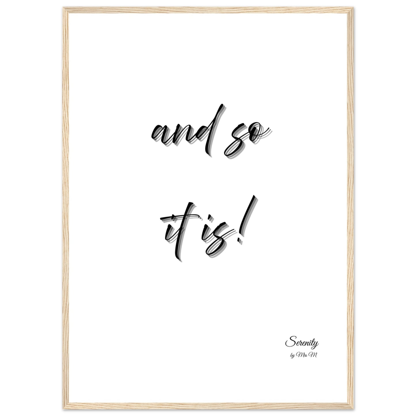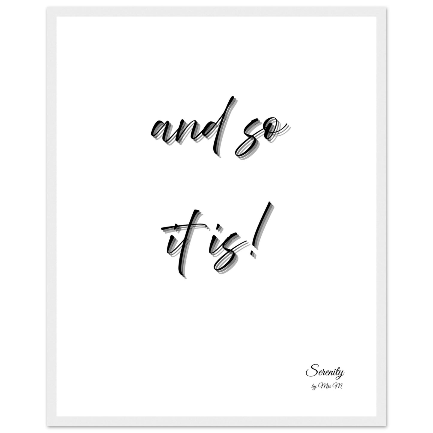 Embrace a moment of affirmation and quiet strength with our "and so it is!" framed poster. This elegantly scripted design, radiating a calm and positive energy, serves as a beautiful reminder to trust in the journey and welcome what comes. It's more than just decor; it's a daily dose of serenity for your living space or office, bringing a sophisticated touch with its clean aesthetic and profound message.