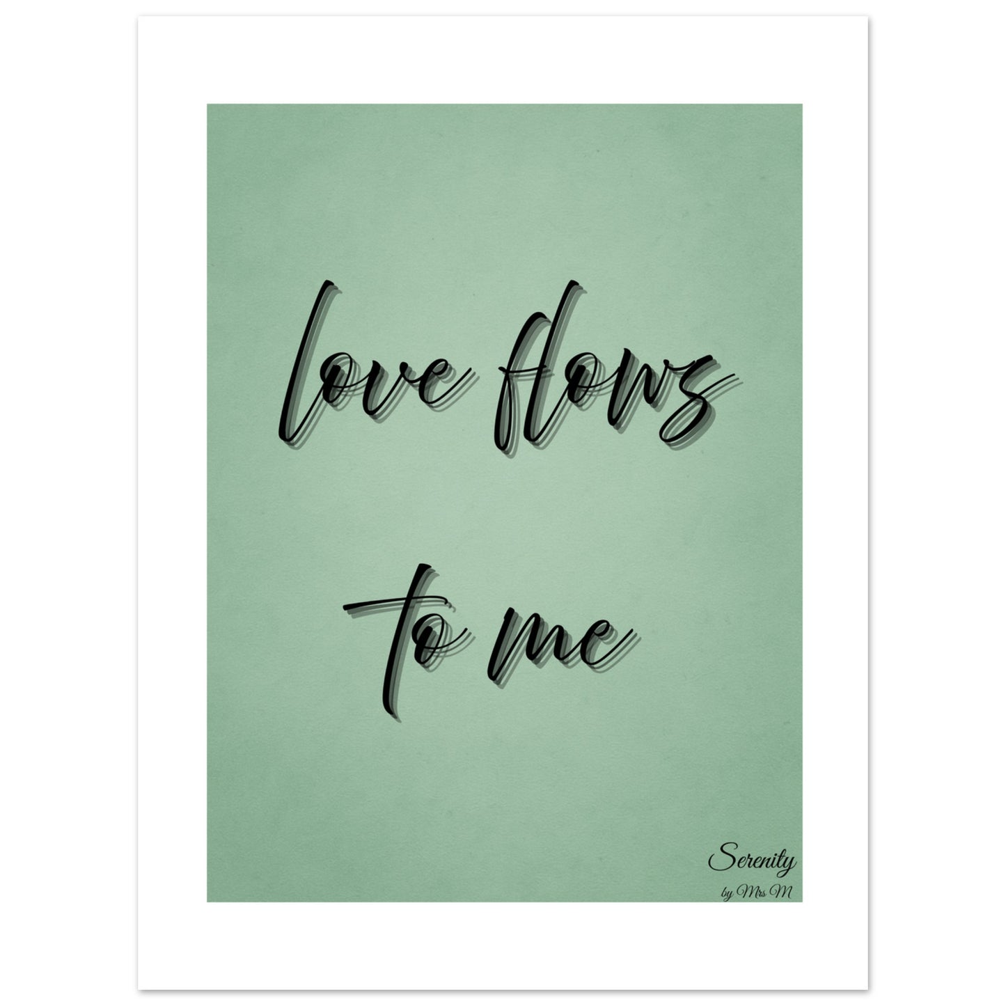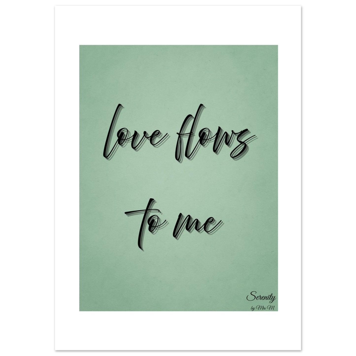 Invite positive energy and a sense of calm into your space with our "love flows to me" affirmation poster. Featuring elegant script on a soothing sage green background, this piece from the Serenity by Mrs M collection is designed to be a gentle daily reminder of self-love and openness. Its serene aesthetic and powerful message make it a perfect addition to any bedroom, meditation corner, or living area, fostering an atmosphere of peace and affection.