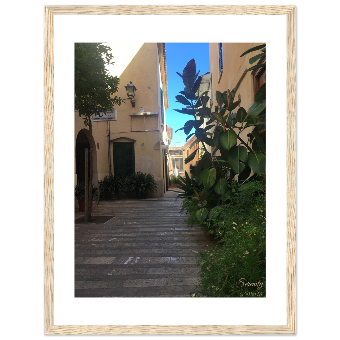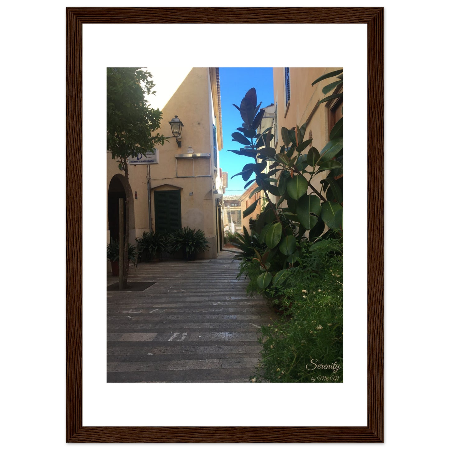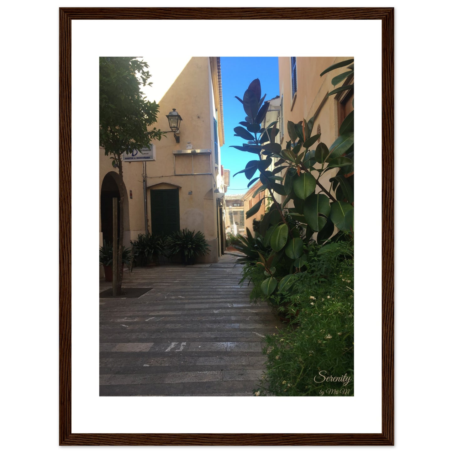Escape to a tranquil Mediterranean alley with this stunning framed poster, capturing the serene beauty of sun-drenched streets and lush greenery. Let the vibrant blue sky and warm architectural tones transport you to a peaceful moment, right in your own home or office. It's more than just a picture; it's an invitation to pause and breathe.