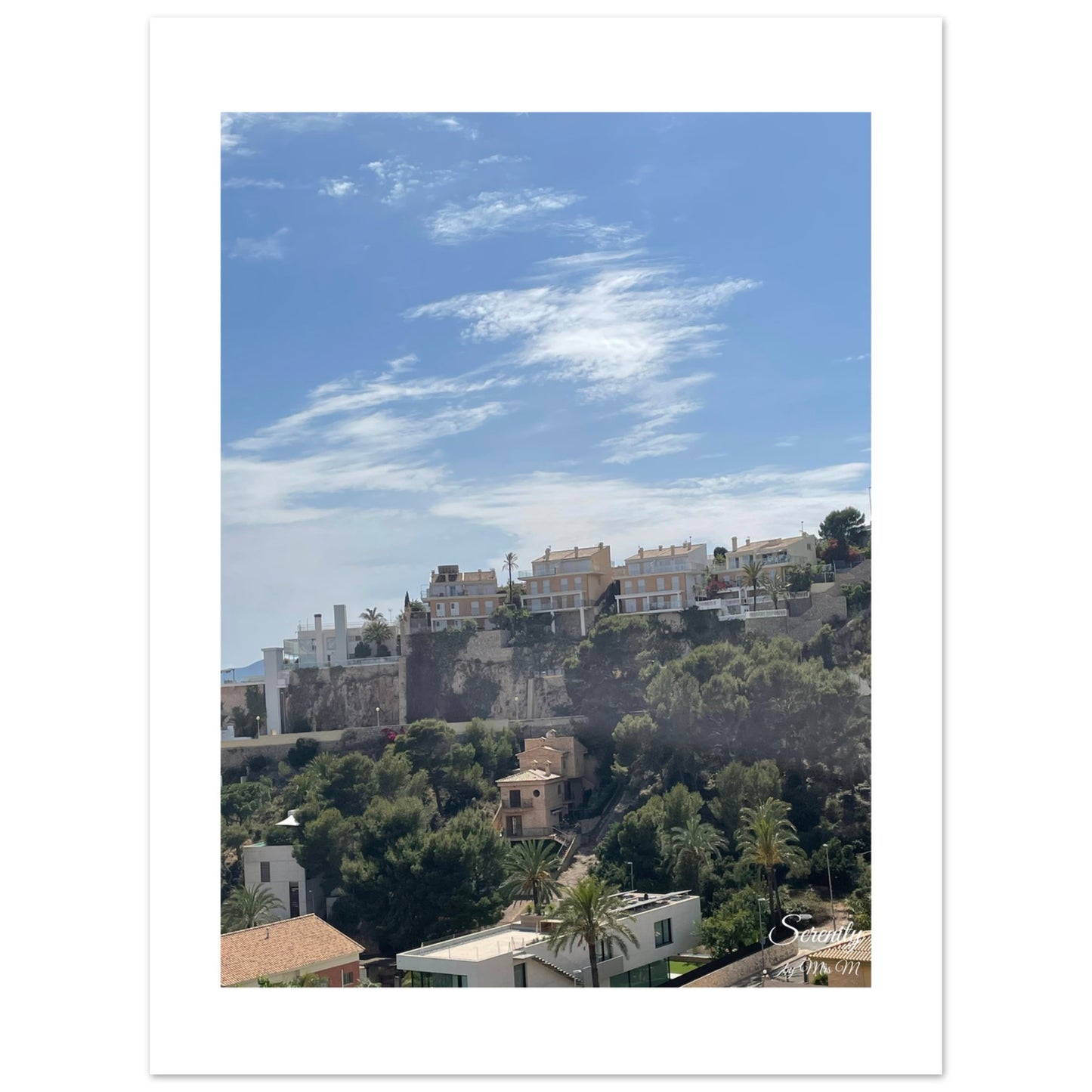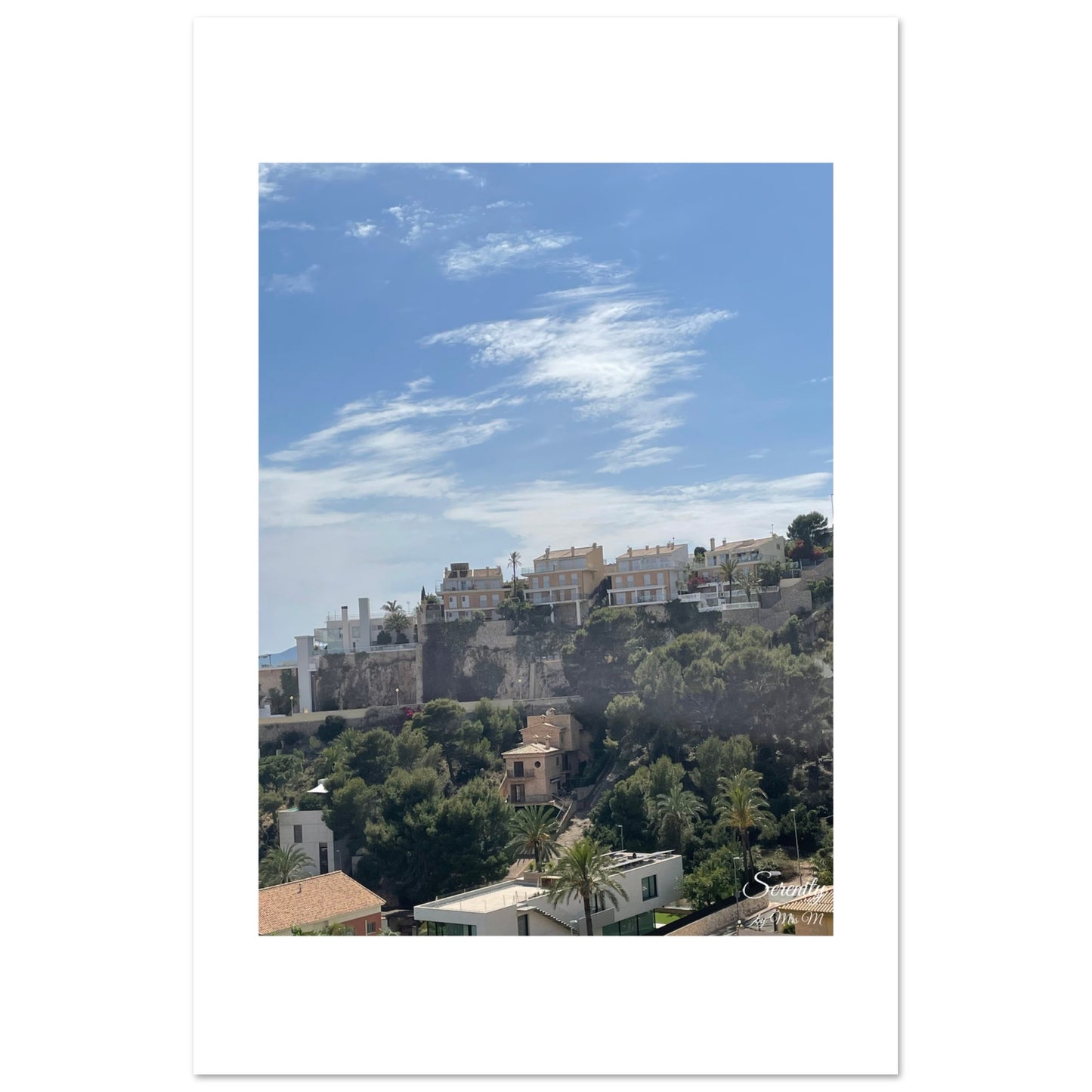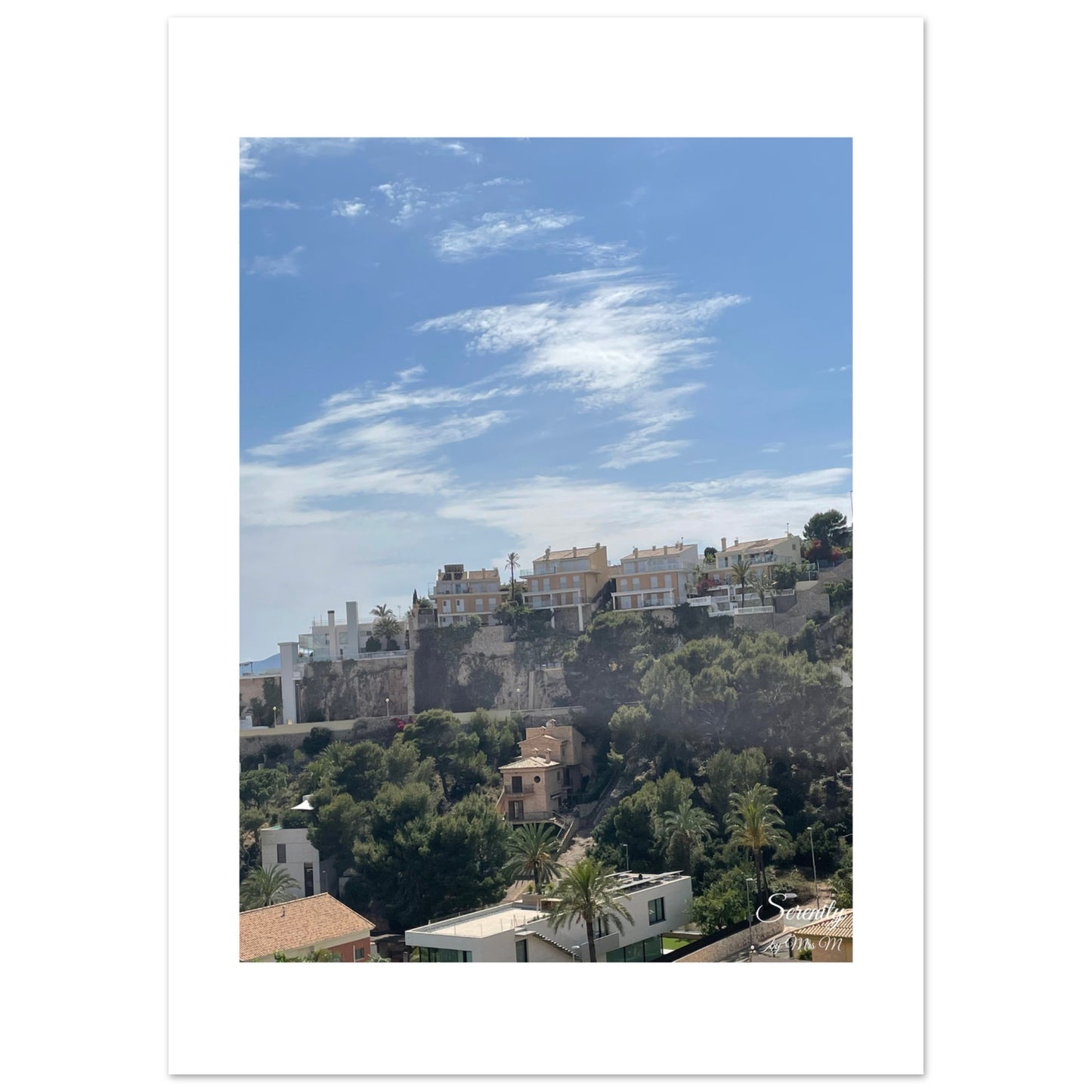 Bring the tranquil beauty of the Mediterranean coast into your home with this captivating poster. Featuring charming hillside houses nestled amidst lush greenery under a vast, azure sky, this artwork evokes a sense of peaceful escape and sun-drenched days. The warm, inviting palette and serene composition make it a perfect addition to any space seeking a touch of relaxed elegance and natural charm.