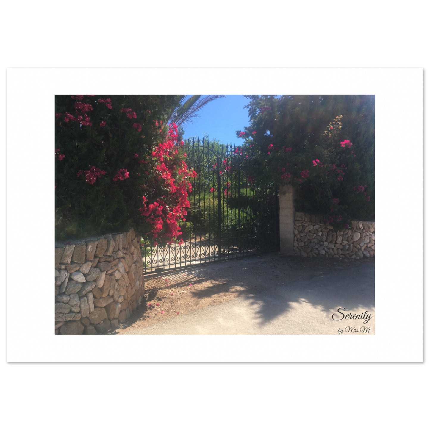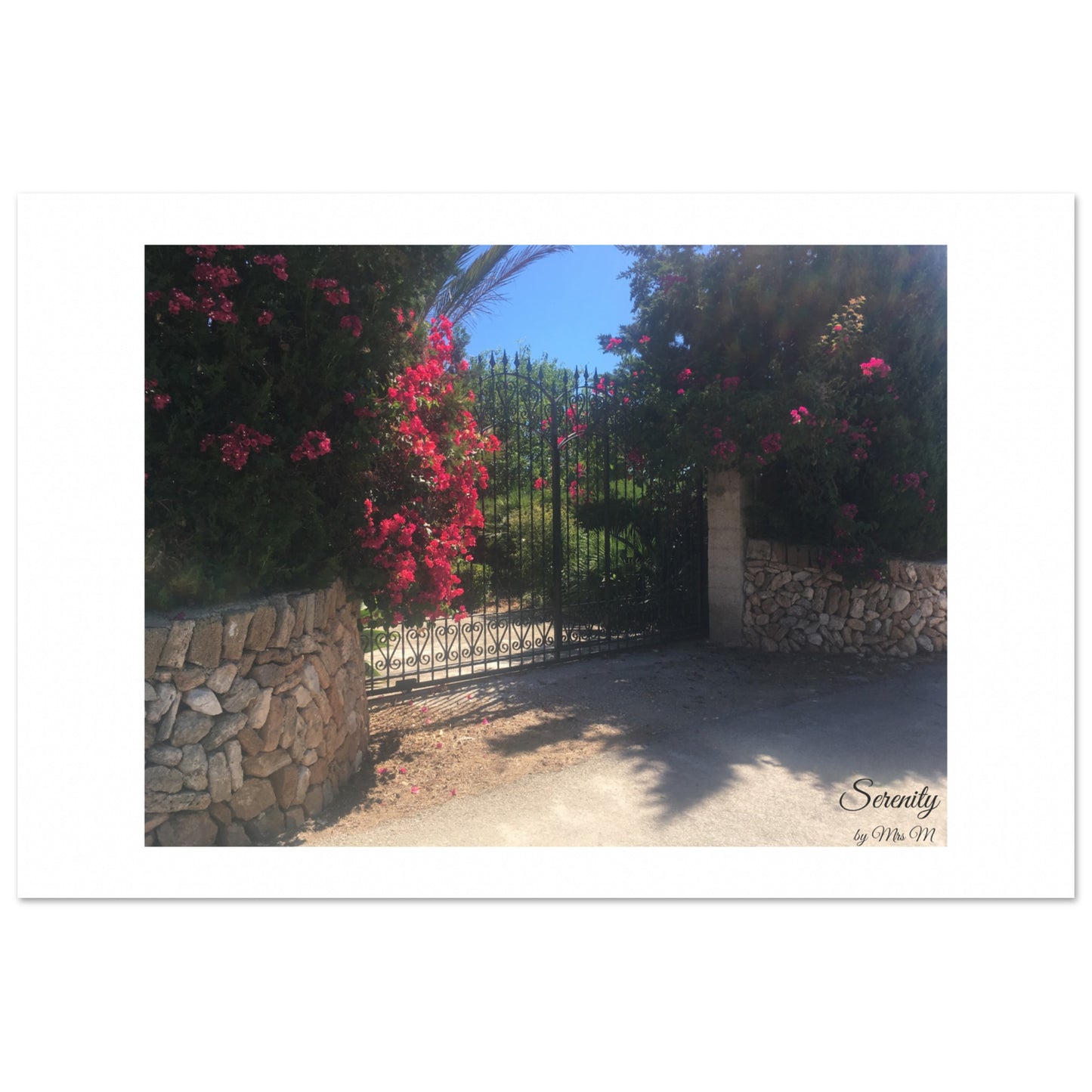 Bring the peaceful allure of the Mediterranean right to your doorstep. Select your ideal size and order your 'Serenity' gate poster today!