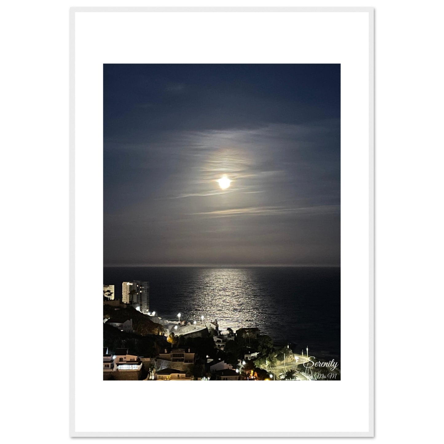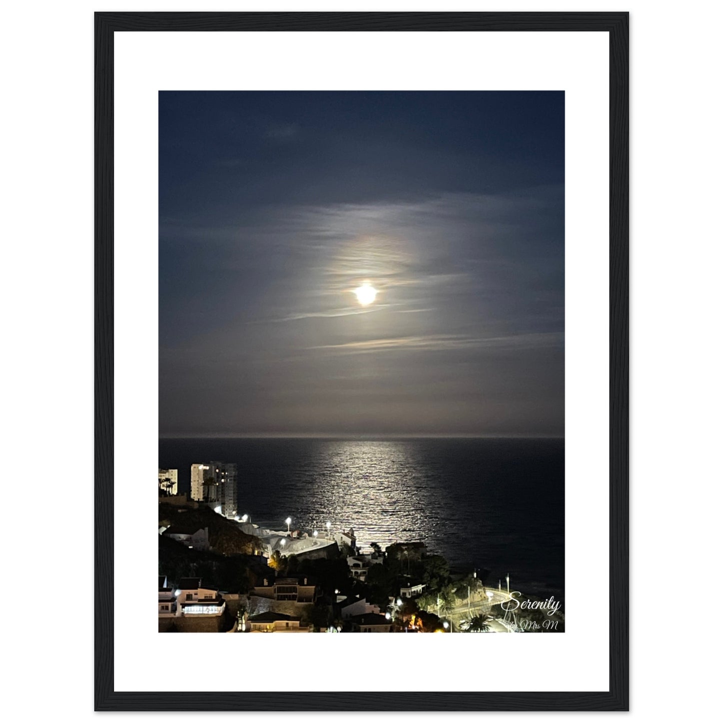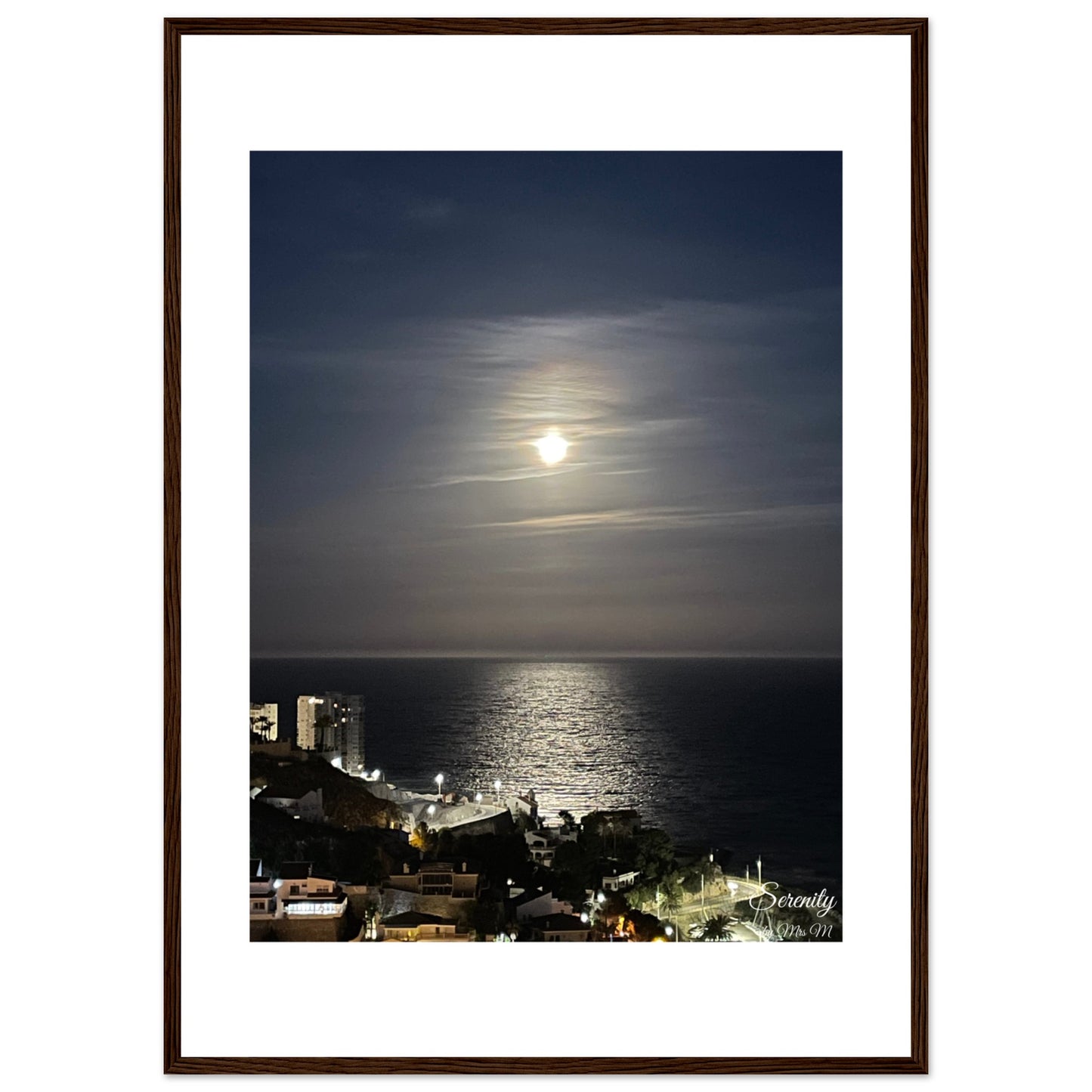 Bring the tranquil magic of a moonlit night over the ocean into your home with this stunning framed poster. Capturing the ethereal glow of the full moon reflecting on the gentle waves and the soft twinkling lights of a coastal town, this piece evokes a sense of peace and breathtaking beauty. It's the perfect way to add a touch of serene elegance and a captivating focal point to any room, inviting calm and contemplation.