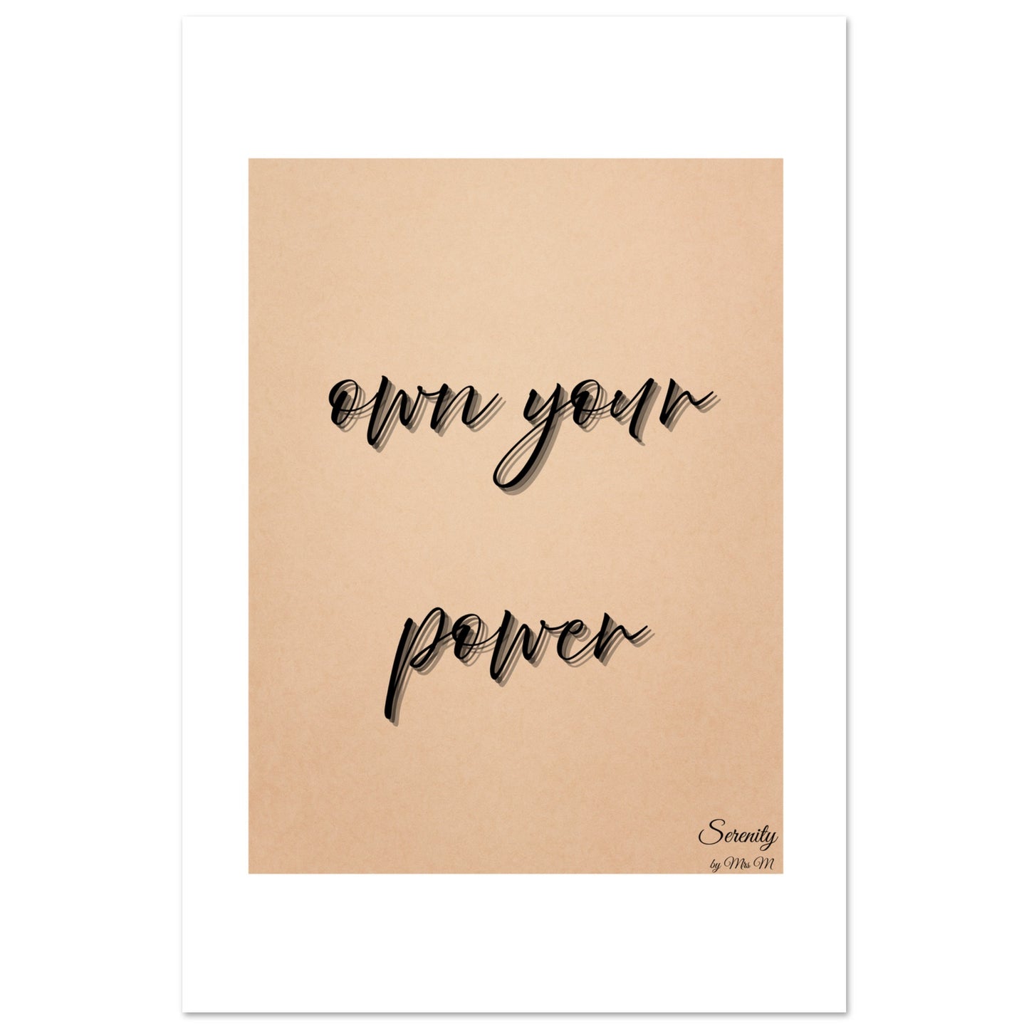 Unleash your inner strength and elevate your space with our "own your power" inspirational script poster. Featuring elegant, shadowed typography on a warm, inviting background, this piece from the 'Serenity by Mrs. M' collection serves as a beautiful daily reminder to embrace your capabilities and confidence. Its sophisticated yet empowering message makes it a perfect addition to any home office, bedroom, or living area, inspiring a positive and powerful atmosphere.