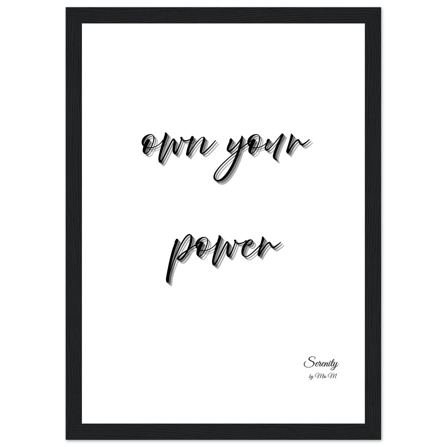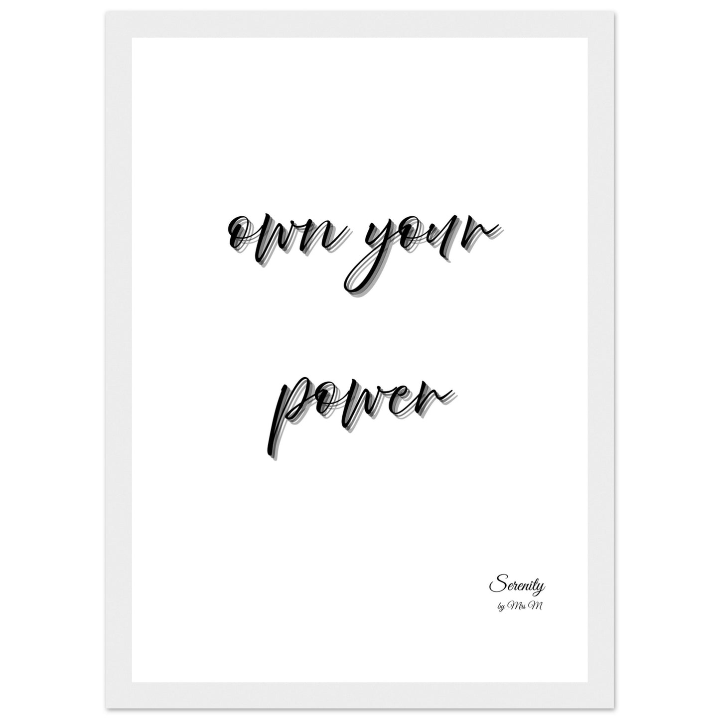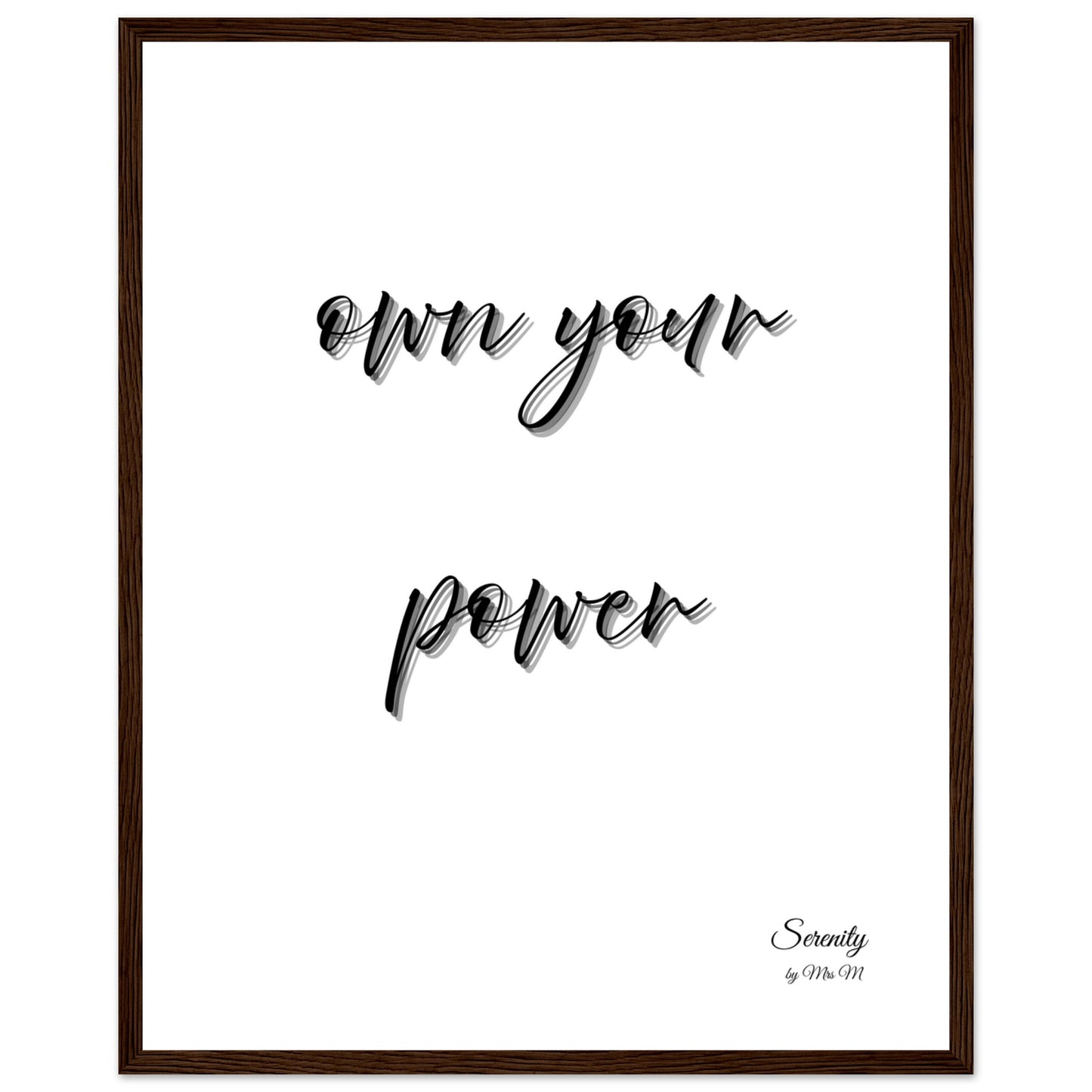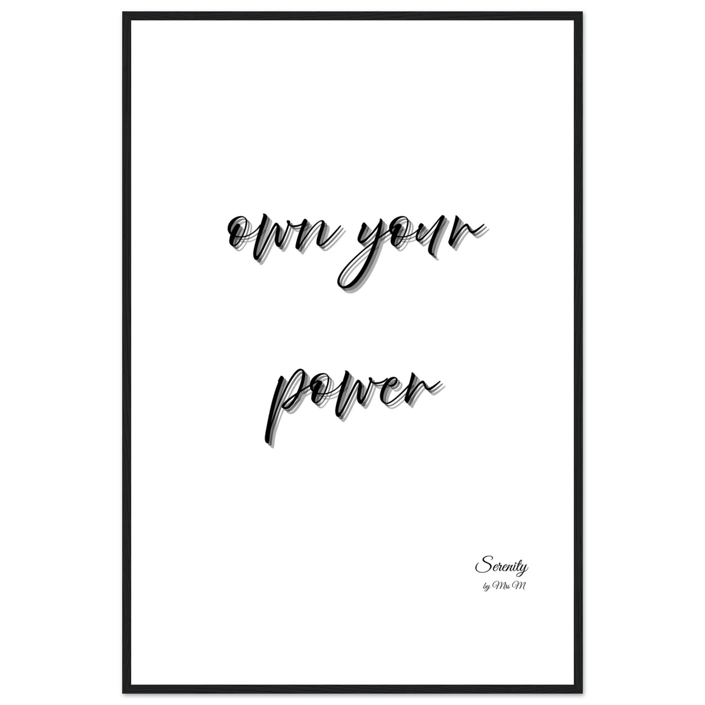 Empower your space and ignite your inner strength with our "own your power" framed poster. Featuring an elegant, flowing script with a subtle drop shadow effect, this minimalist yet powerful design from the "Serenity by Mrs M" collection is a daily reminder to embrace your capabilities. Its clean aesthetic and inspiring message make it a perfect addition to any home office, bedroom, or living area where a touch of motivation and calm is desired.