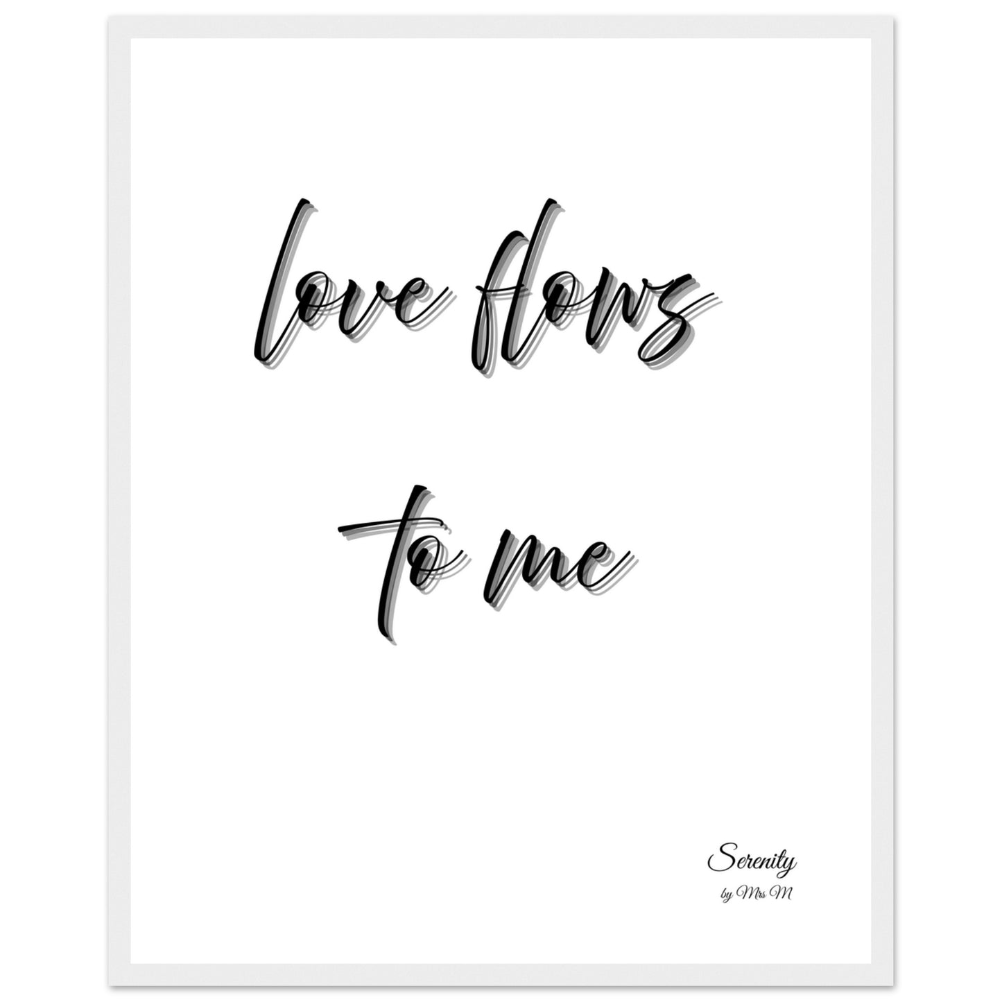 Invite positive energy into your space with this elegant "love flows to me" affirmation framed poster, part of the exclusive Serenity collection by Mrs M. Its simple, flowing script and minimalist design create a serene and uplifting atmosphere, perfect for a meditation corner, bedroom, or living area. Let this beautiful piece serve as a daily reminder to embrace love and positivity in your life.