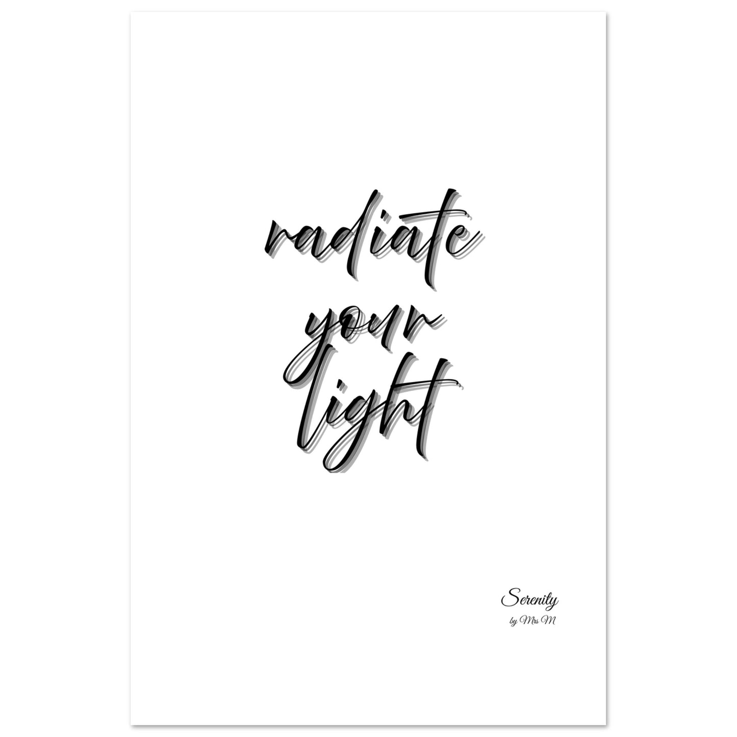 Infuse your living space with a daily dose of positivity and elegant charm with our "radiate your light" typography poster. Featuring a sophisticated script in a gentle, layered shadow effect, this design brings a serene yet powerful message to any room. Perfect for a minimalist aesthetic or as a thoughtful gift, it's a beautiful reminder to let your inner brilliance shine.