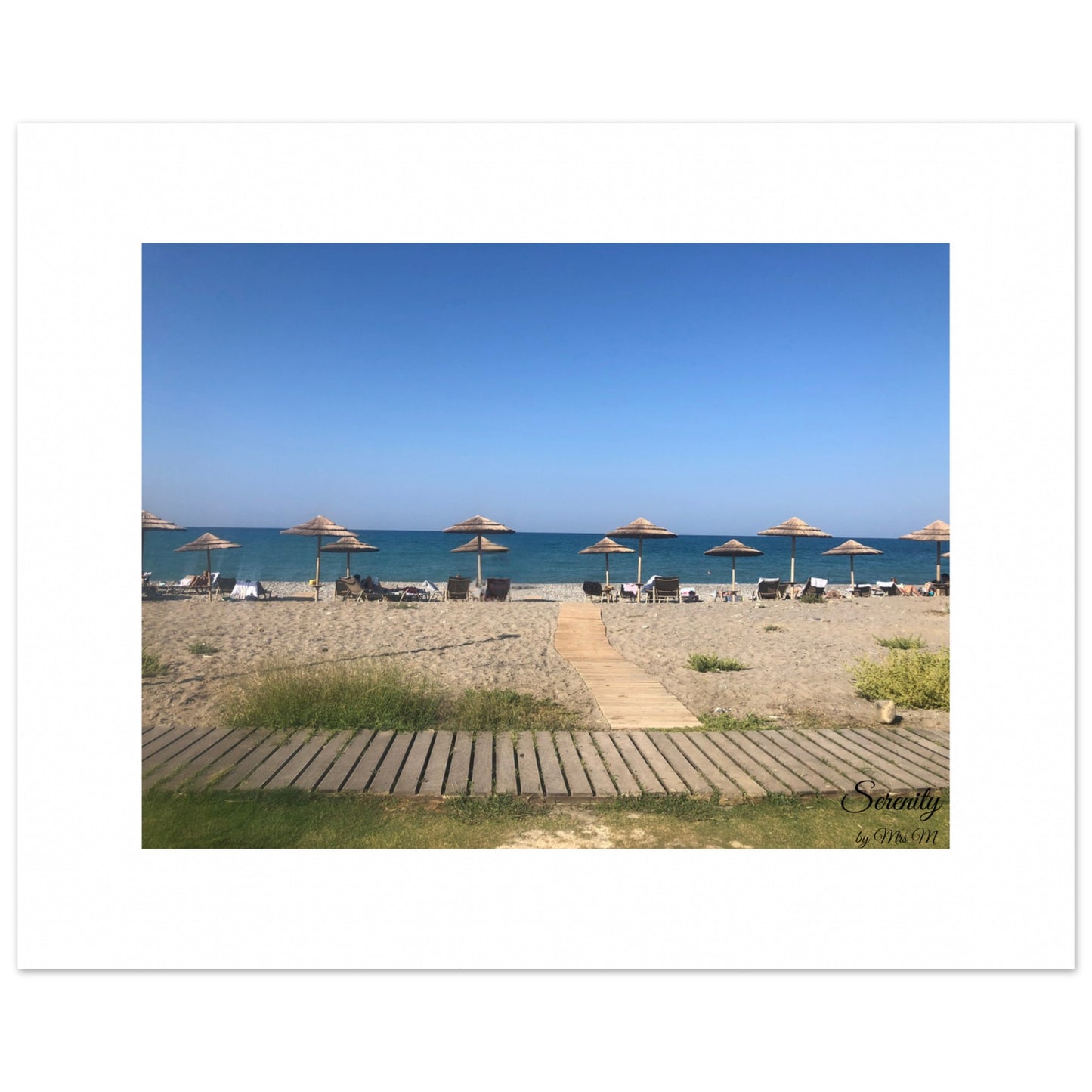 Transform your space into a tranquil escape with our captivating Serene Blue Waters Beach Resort poster. Featuring a picturesque beach scene with inviting straw umbrellas, golden sand, and the endless expanse of the blue Mediterranean, this print evokes the ultimate sense of calm and relaxation. It’s perfect for anyone dreaming of sun-kissed days and gentle ocean breezes, bringing that vacation vibe right into your home or office.