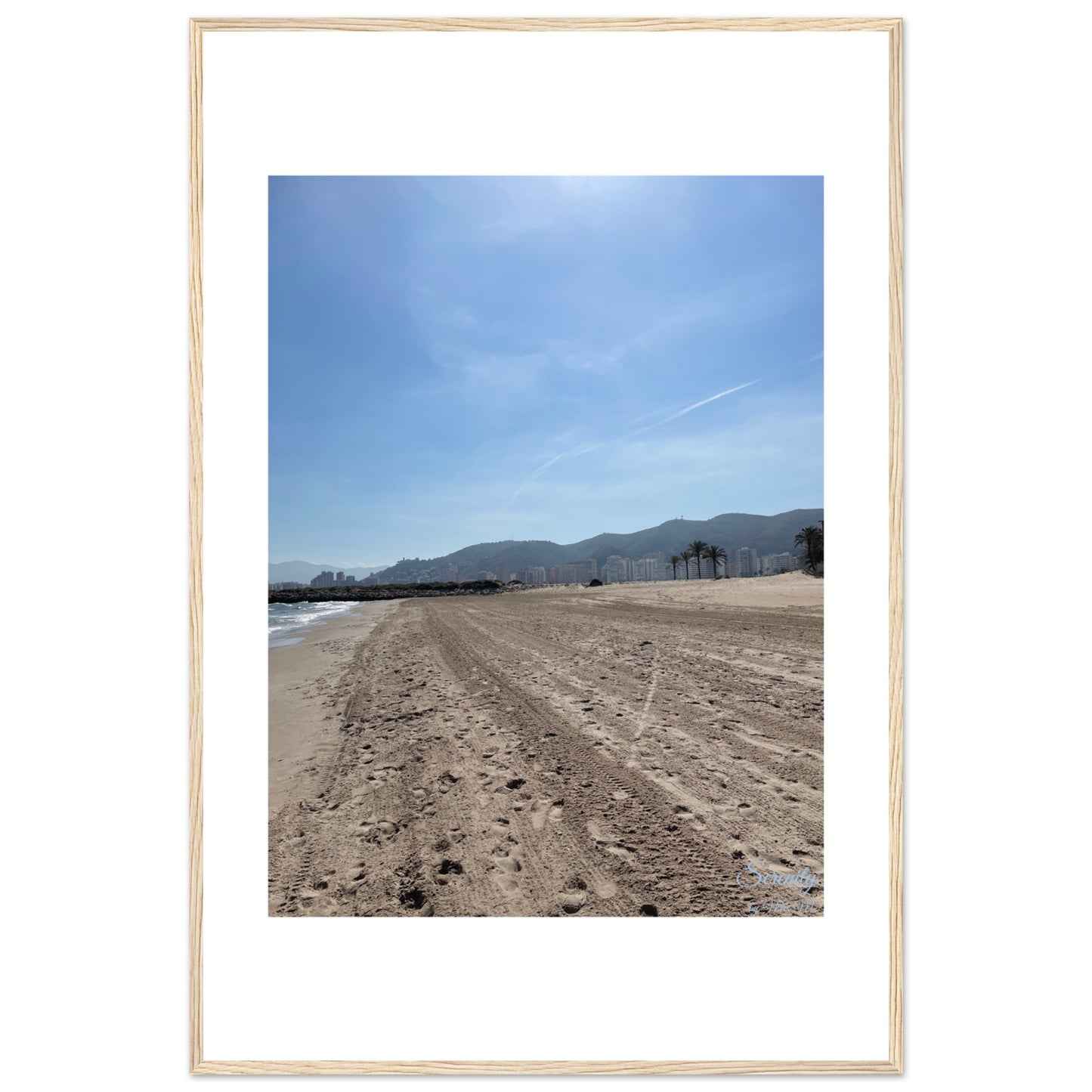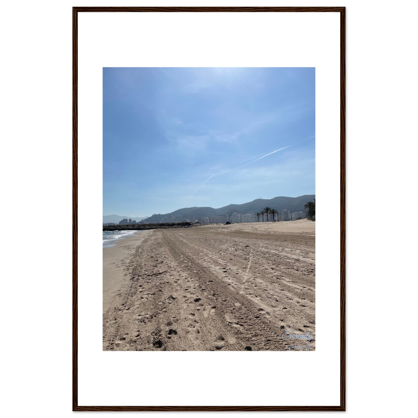 Bring the tranquil beauty of a sun-kissed beach into your home with our 'Serene Shoreline Escape' framed poster. Imagine the gentle rhythm of the waves and the vast expanse of a clear blue sky, perfectly captured to infuse your space with a calming, open atmosphere. This print is an invitation to unwind, a daily reminder of serene horizons and peaceful moments.