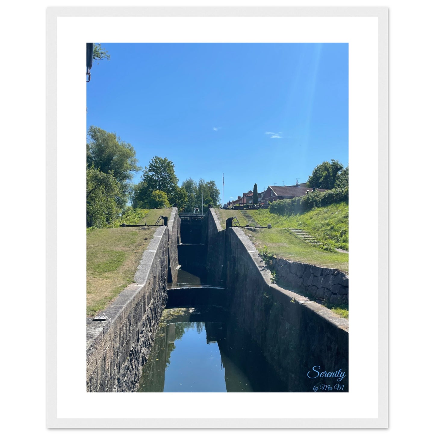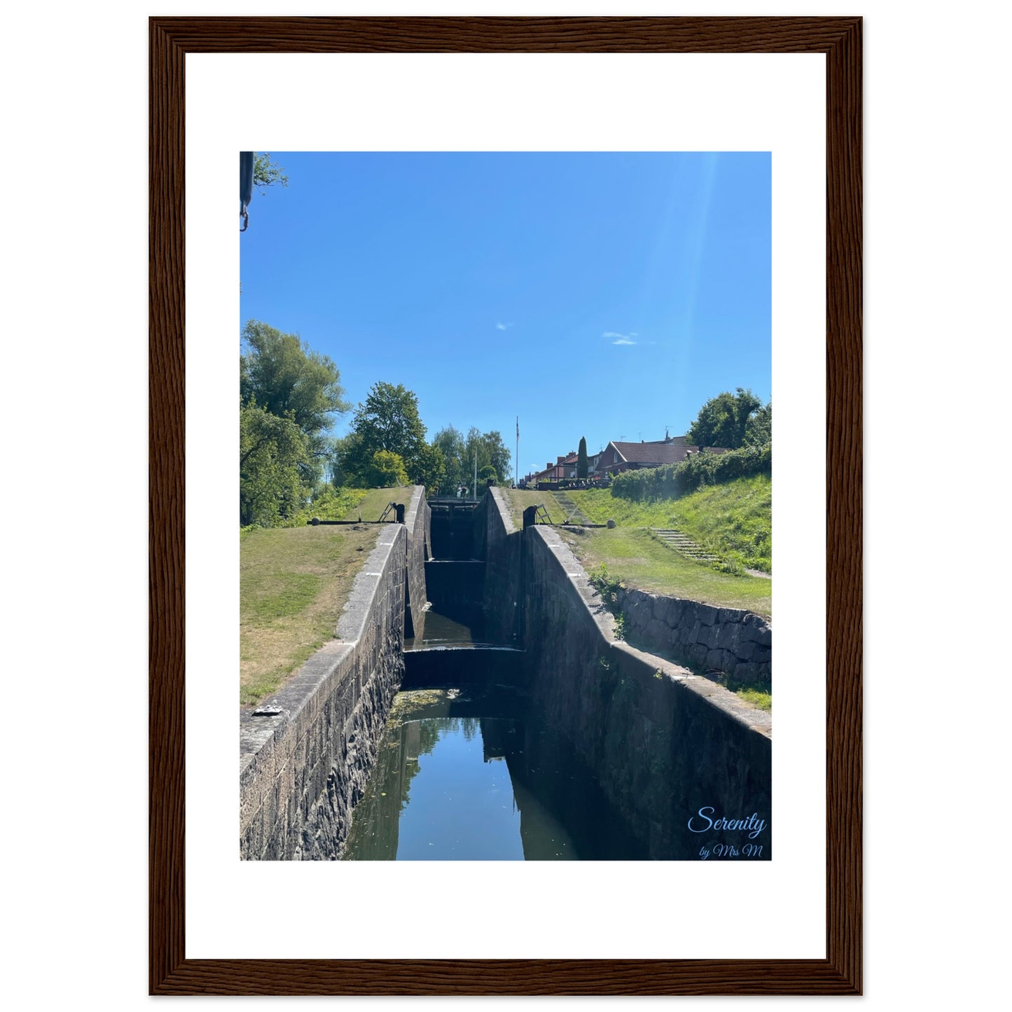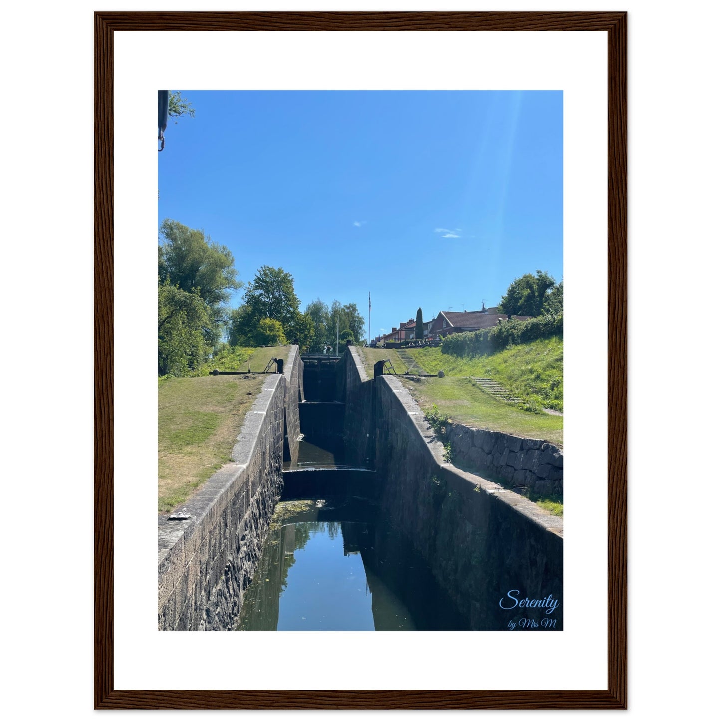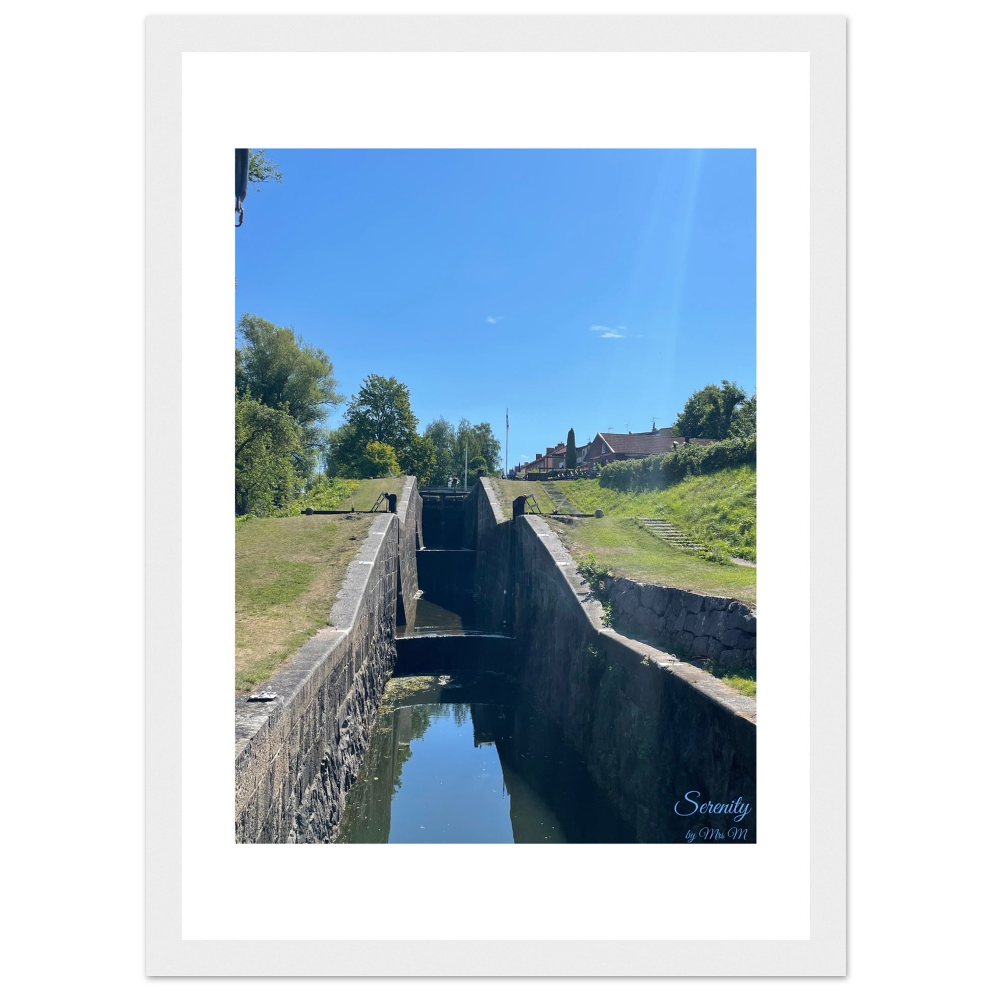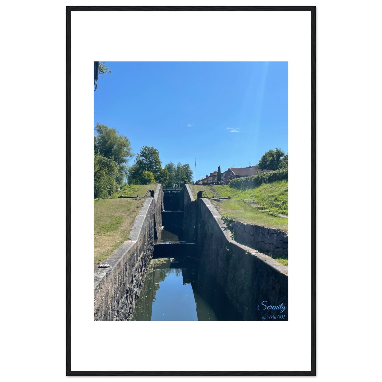 Bring the peaceful essence of a sun-drenched canal lock into your home with our "Tranquil Water Lock "Serenity" " framed poster. This beautiful artwork, capturing the calm blue sky and tranquil waters, is more than just a picture – it's an invitation to a moment of quiet reflection, transforming any room into a serene escape. Ideal for those who cherish nature's quiet beauty and timeless landscapes.