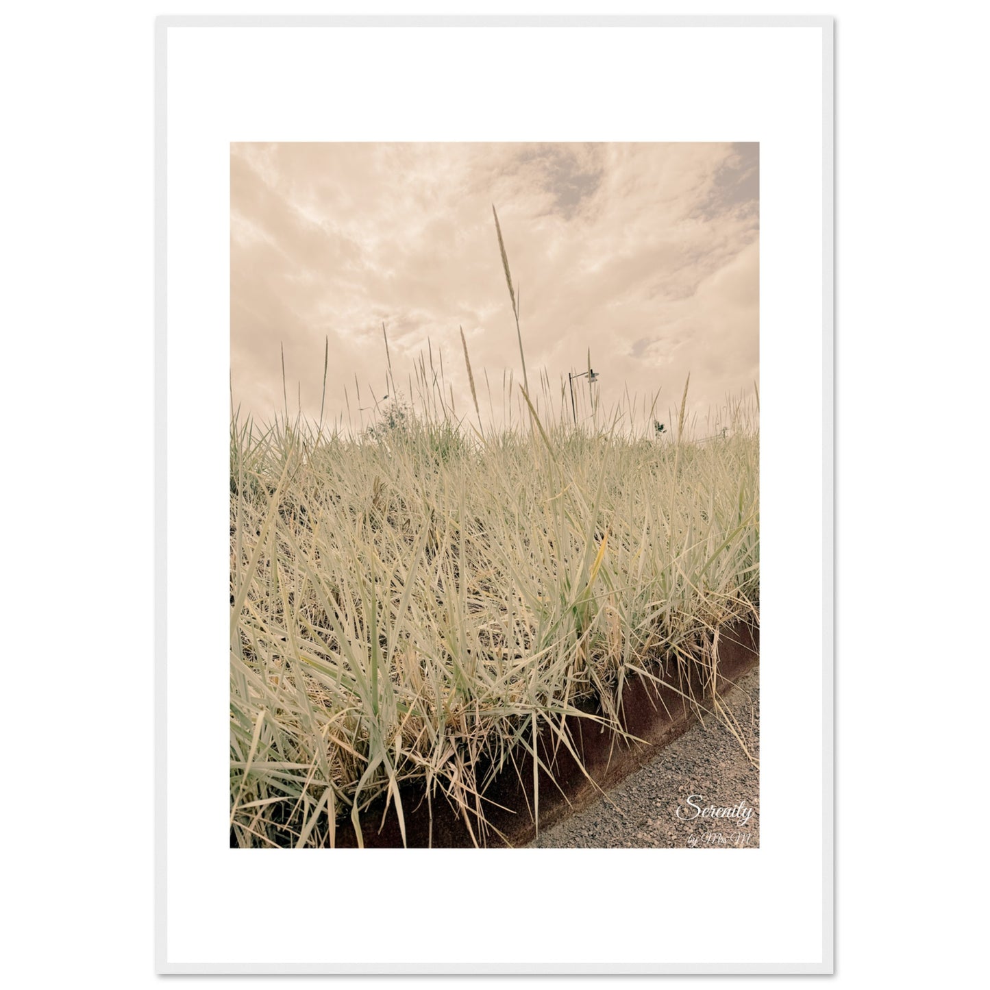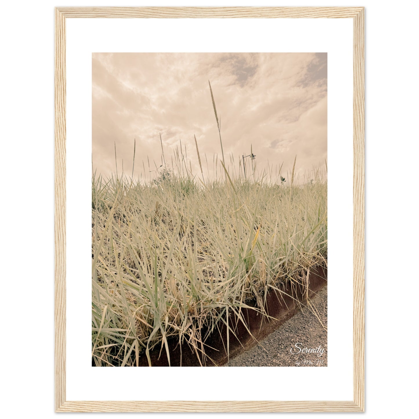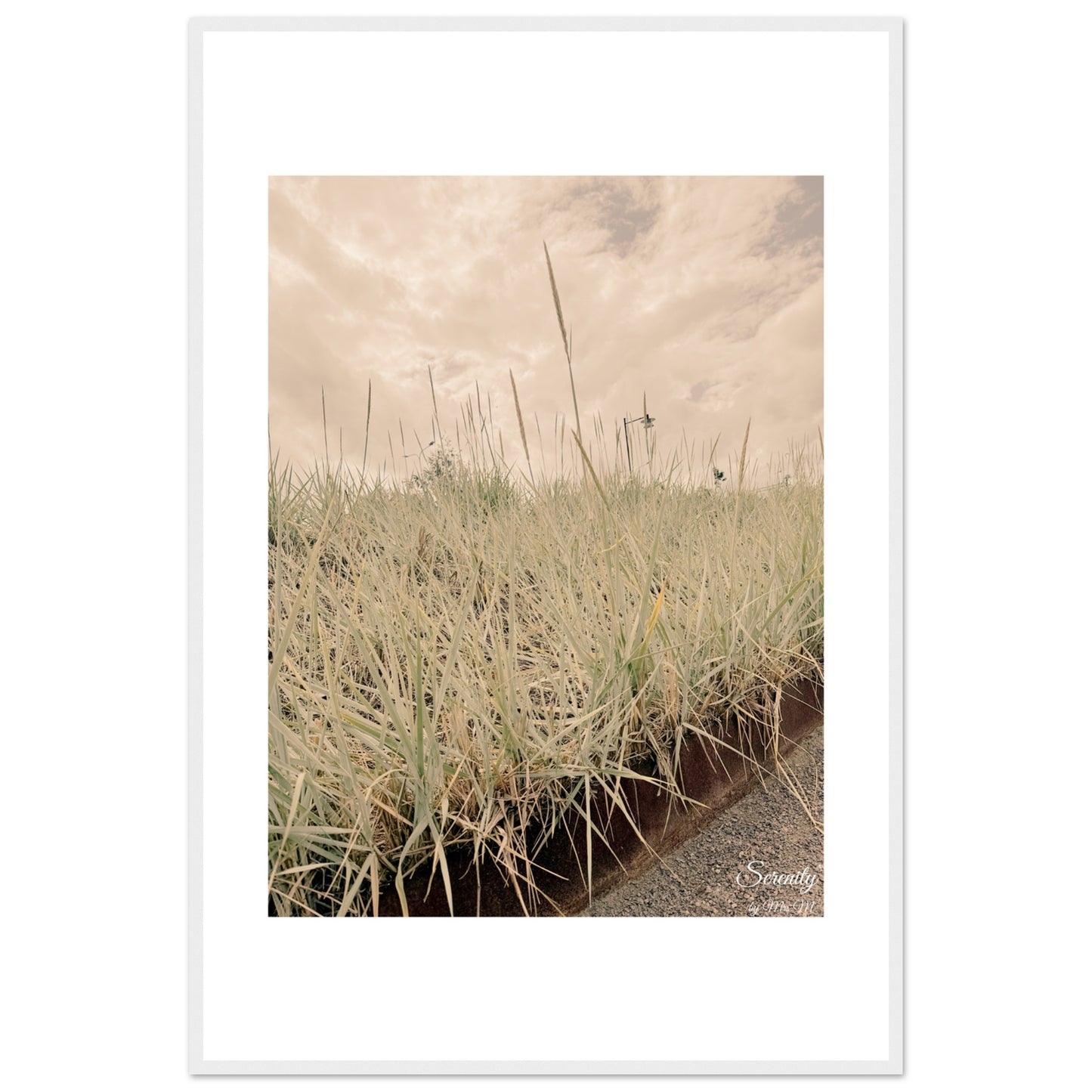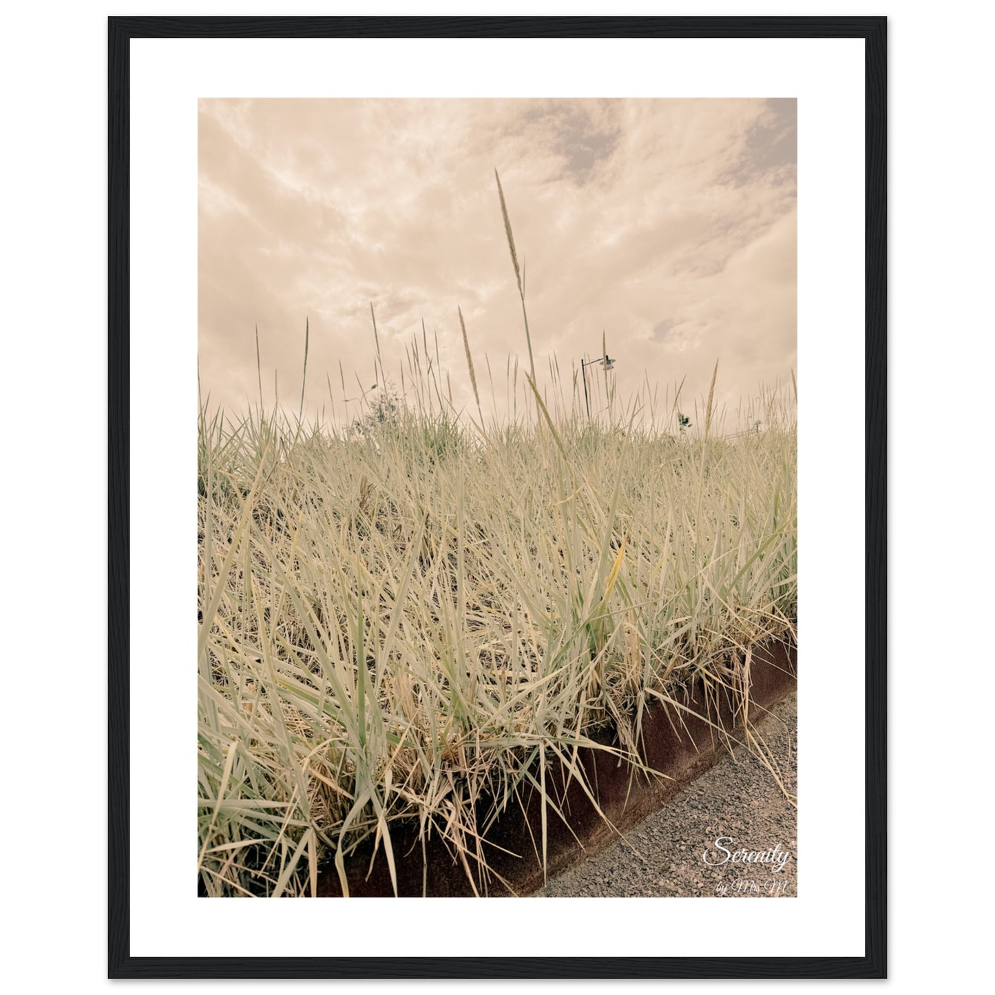 Bring the tranquil beauty of a serene landscape into your home with our captivating framed poster. Featuring a delicate interplay of soft, muted tones and natural textures, this piece evokes a sense of calm and gentle escape. The subtle hint of an overcast sky and the upward reach of delicate grasses create a peaceful, contemplative mood, perfect for enhancing any space with understated elegance.