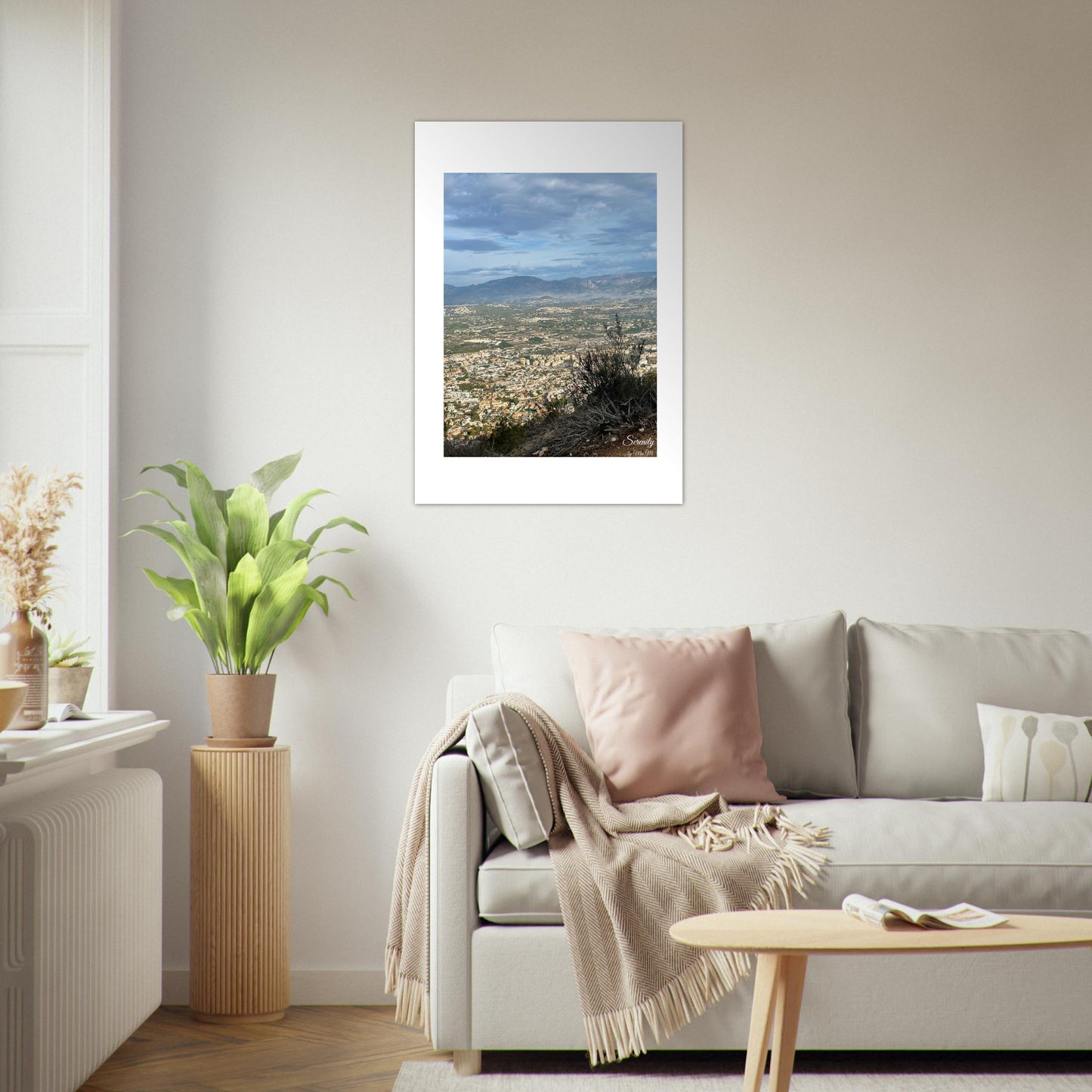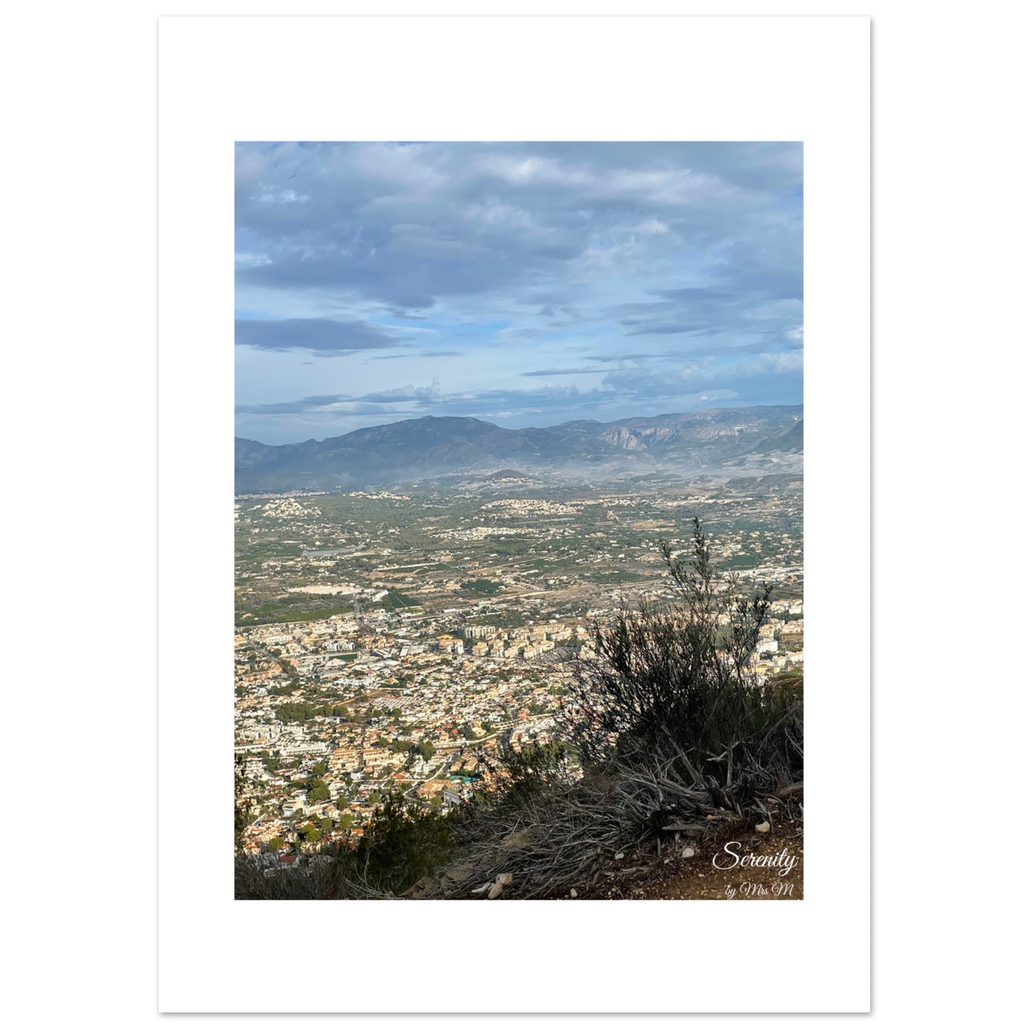 Bring the tranquil beauty of a sprawling landscape vista into your home with our "Serenity" poster. This captivating piece, featuring a vast urban landscape nestled against majestic mountains under a soft, cloudy sky, evokes a sense of peace and expansive beauty. The subtle mist in the distance and the intricate details of the cityscape blend seamlessly with nature's grandeur, making it a perfect addition for those who appreciate both urban charm and natural serenity.