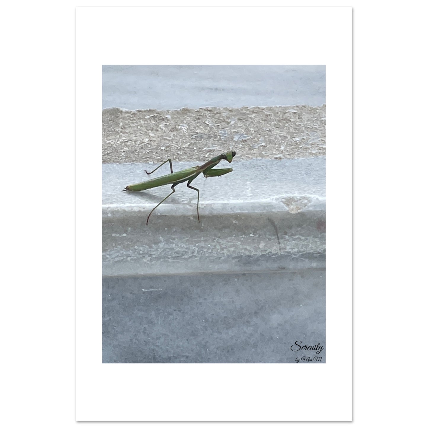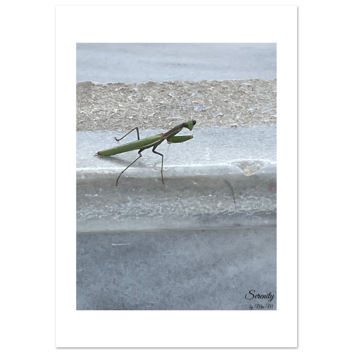 Embrace a moment of tranquil contemplation with our "Graceful Praying Mantis" art print, featuring a beautifully poised praying mantis. This minimalist piece, set against a soft, muted backdrop, brings a touch of quiet elegance and natural wonder into your space. Its gentle greens and subtle textures create a calming focal point, perfect for any room seeking a sense of peace and natural harmony.