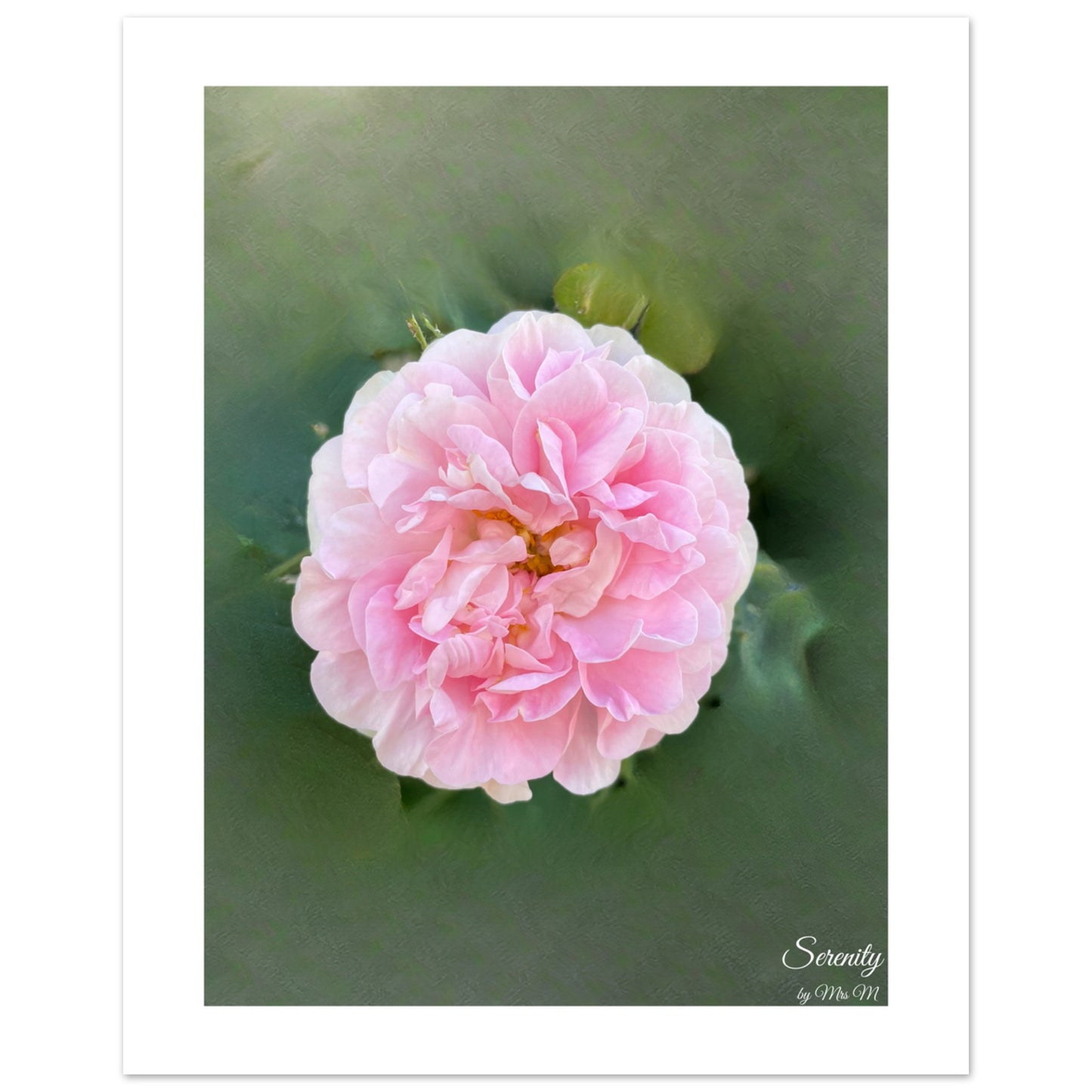 Bring a touch of tranquil beauty into your home with our "Serenity" Rose Petal Pink Floral Art Print. This exquisite poster captures the delicate layers and soft hues of a blossoming pink rose, set against a calming, painterly green background. The gentle color palette and elegant composition evoke a sense of peace and natural grace, making it a perfect addition to any space seeking a serene and sophisticated focal point.