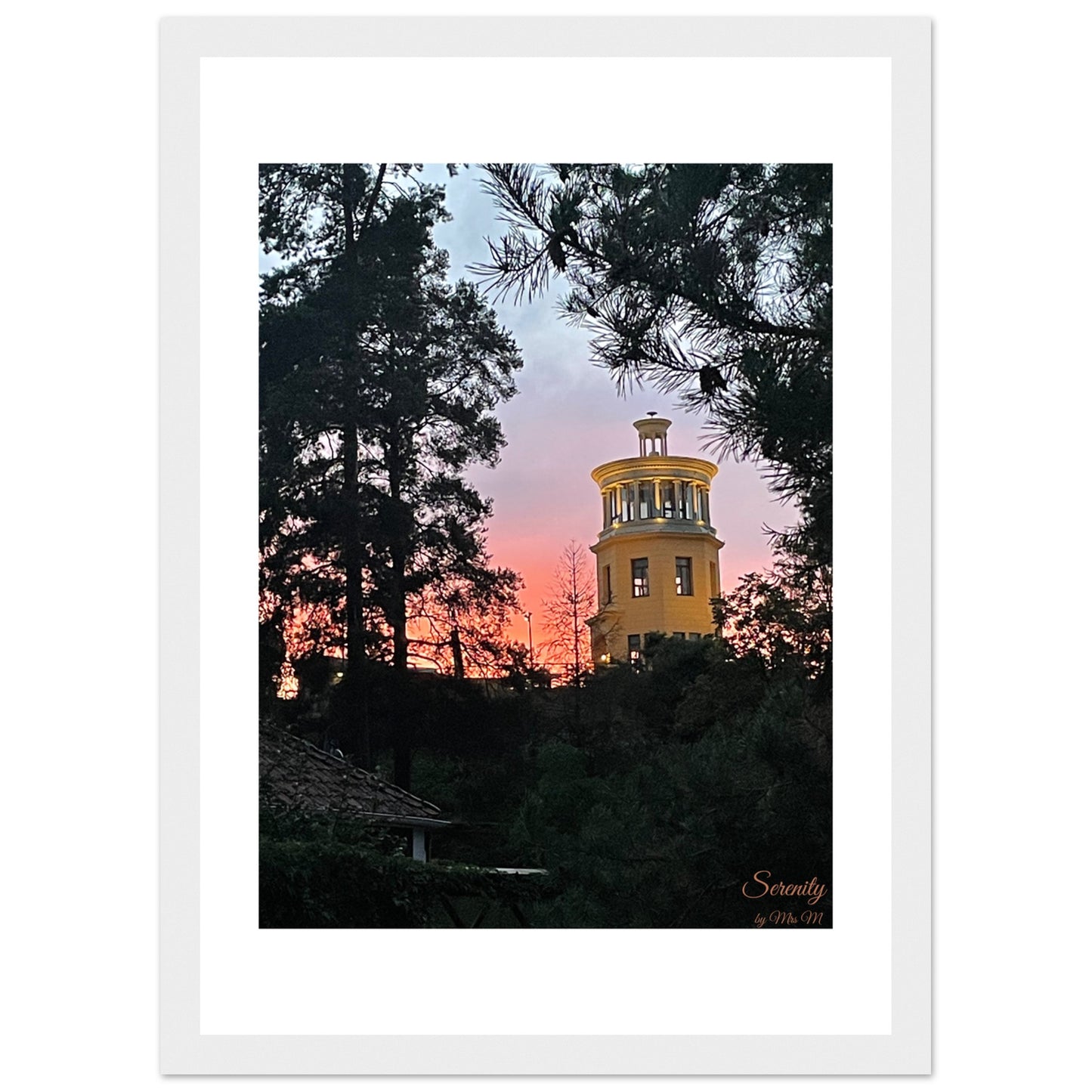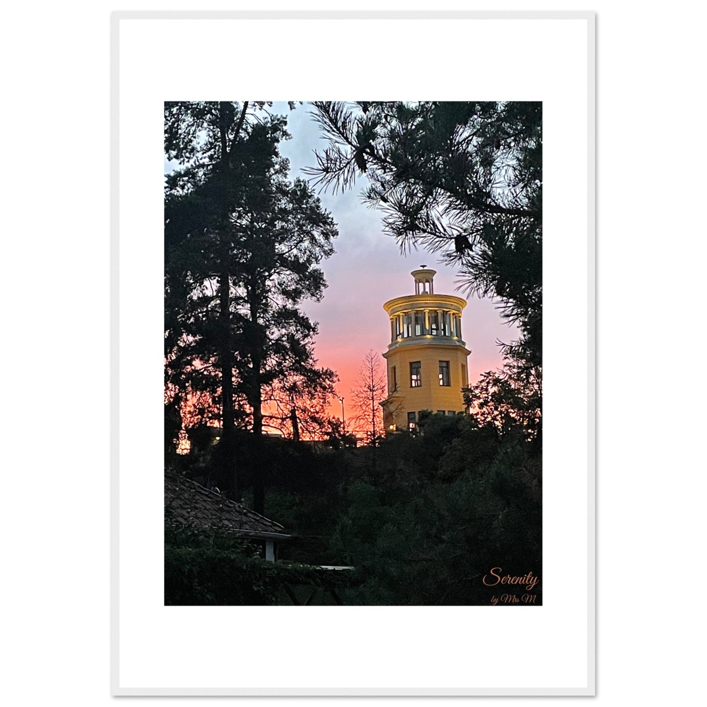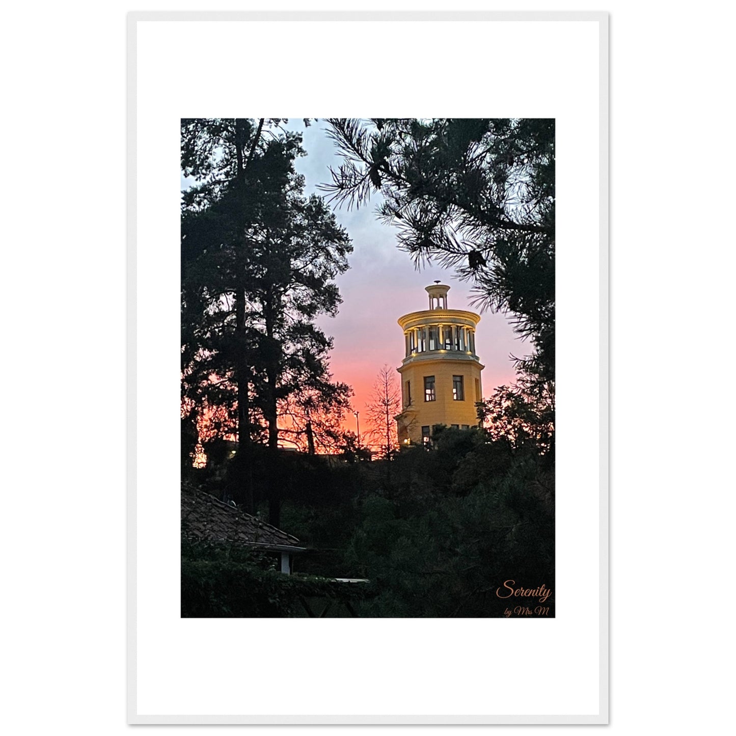 Craft your perfect piece of serenity – choose your size and frame, and order this captivating sunset tower poster today!