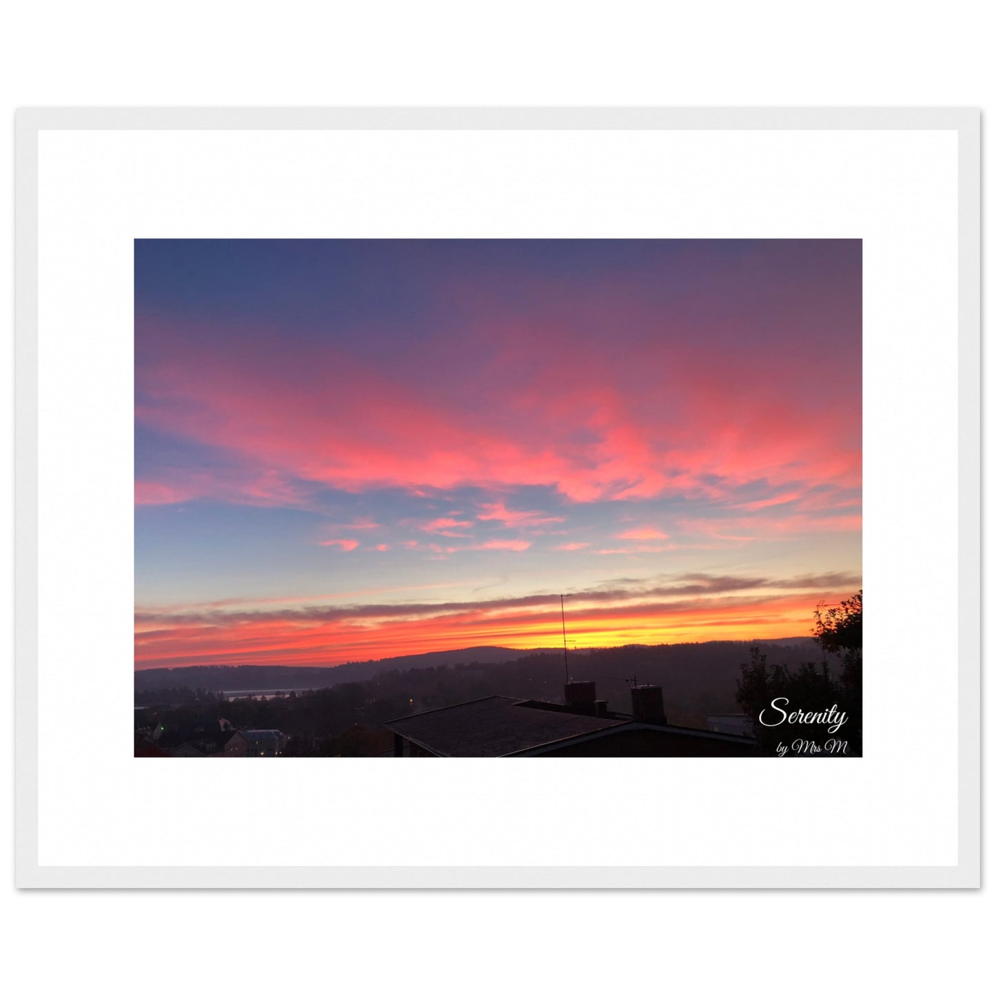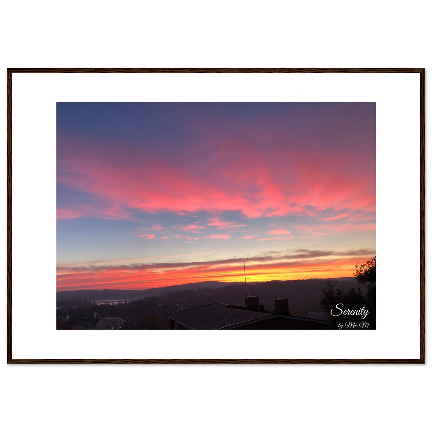 Capture the breathtaking beauty of a serene sunset, bursting with vibrant hues of pink, orange, and deep purple, right in your own space. Our "Serenity Sunset" framed poster transforms any room into a tranquil haven, offering a daily escape to a sky painted with nature's finest artistry. It’s more than just a picture; it’s a moment of peace, ready to hang and inspire.