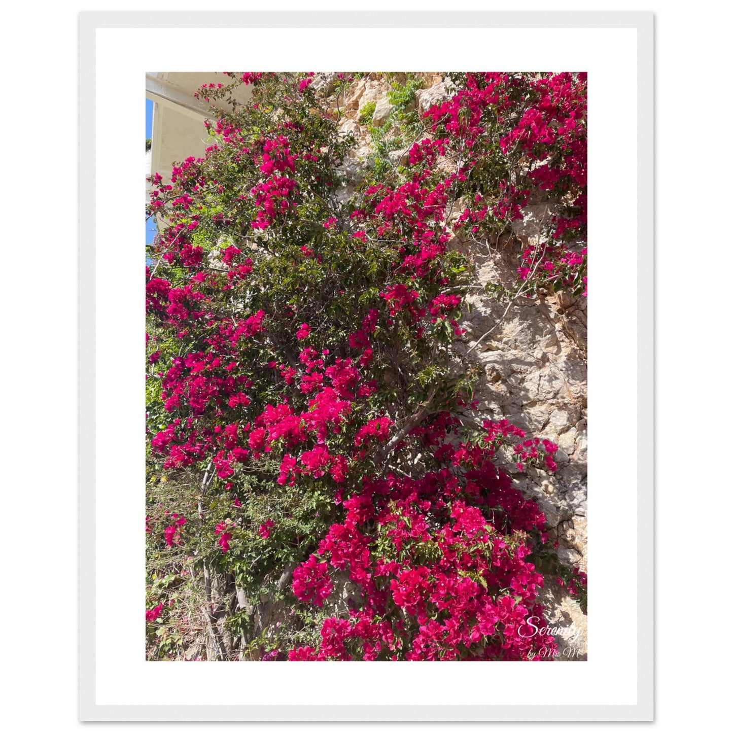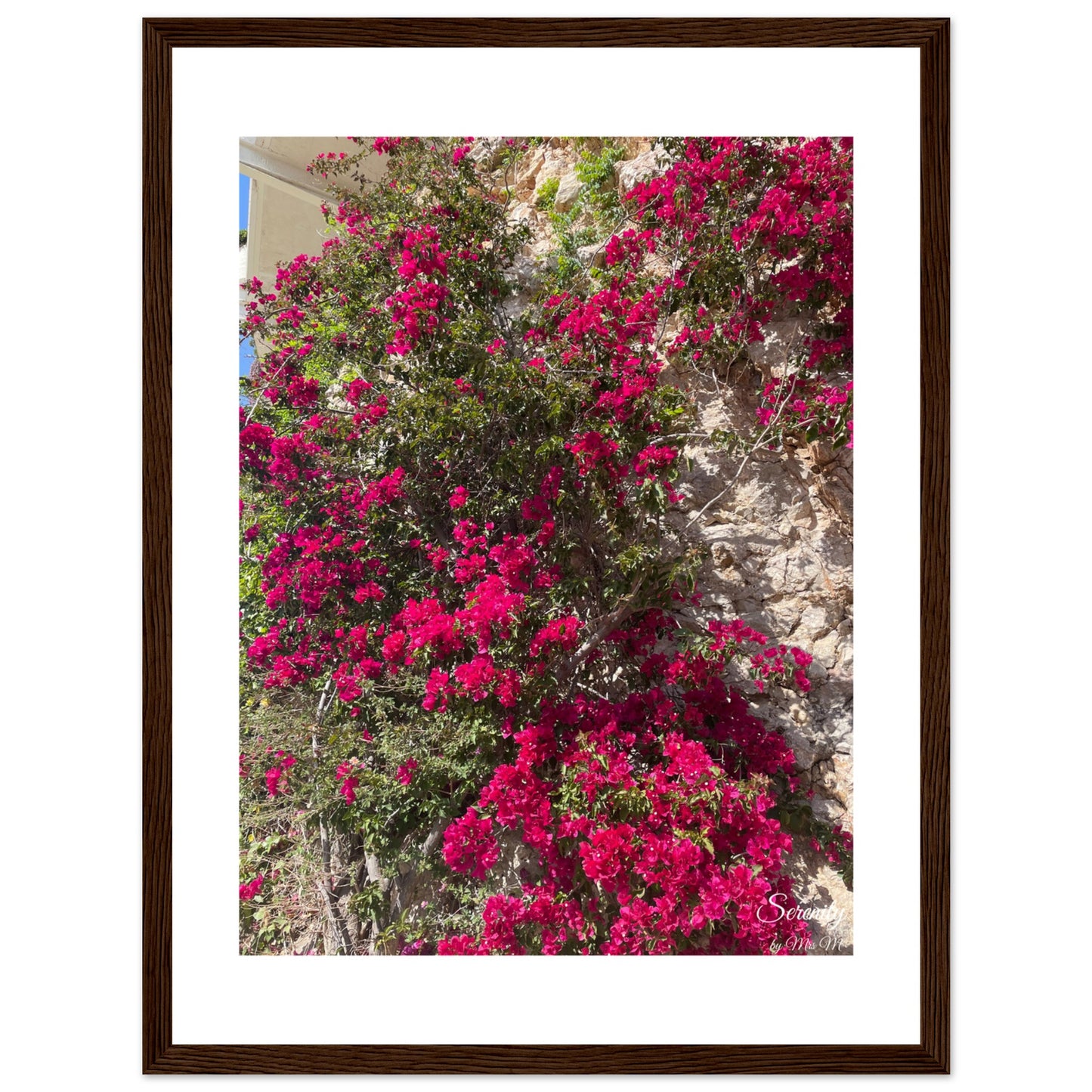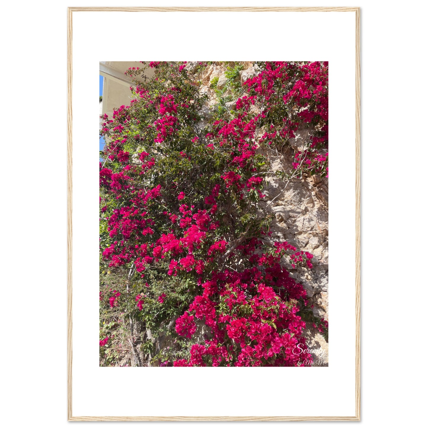 Bring the radiant beauty of a sun-drenched Mediterranean garden into your home with this stunning Bougainvillea framed poster. The captivating fuchsia blooms burst with life against a rustic, sun-kissed stone wall, creating a vibrant focal point that evokes warmth, charm, and an everlasting summer feeling. Perfect for adding a pop of natural color and a touch of exotic elegance to any room.